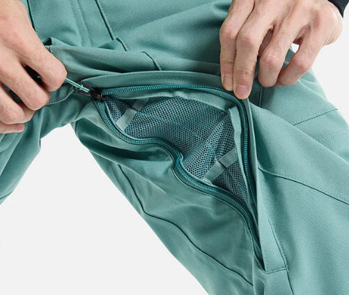細かなディテールがモノをいうジップベント、調節機能なサスペンダー、全ての縫い目にシーム施したテープ加工など、