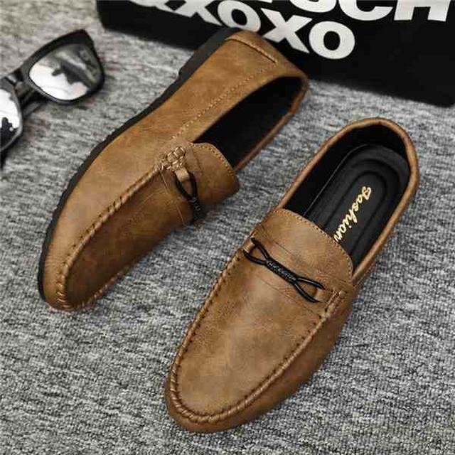 スリッポン メンズ カジュアルシューズ ローファー 高級感 車運転 通気性 靴 通学 通勤 春 秋 冬 合皮 柔らかい ブラウン 27cm LB021