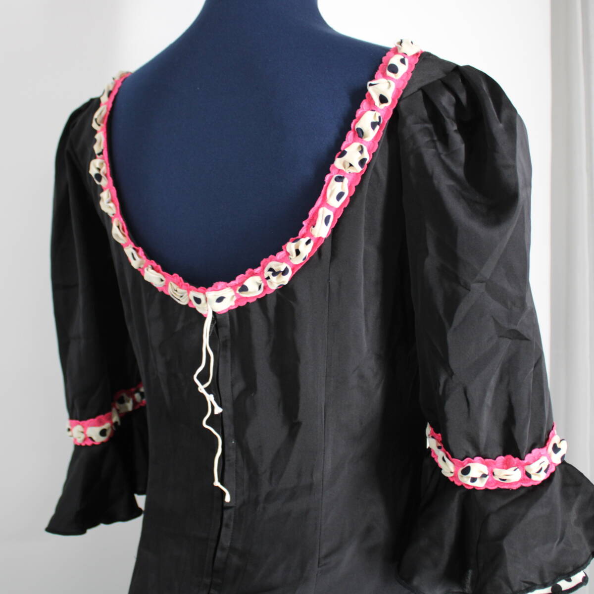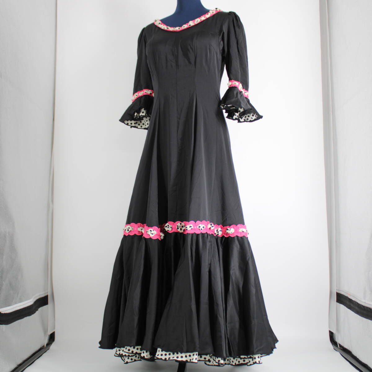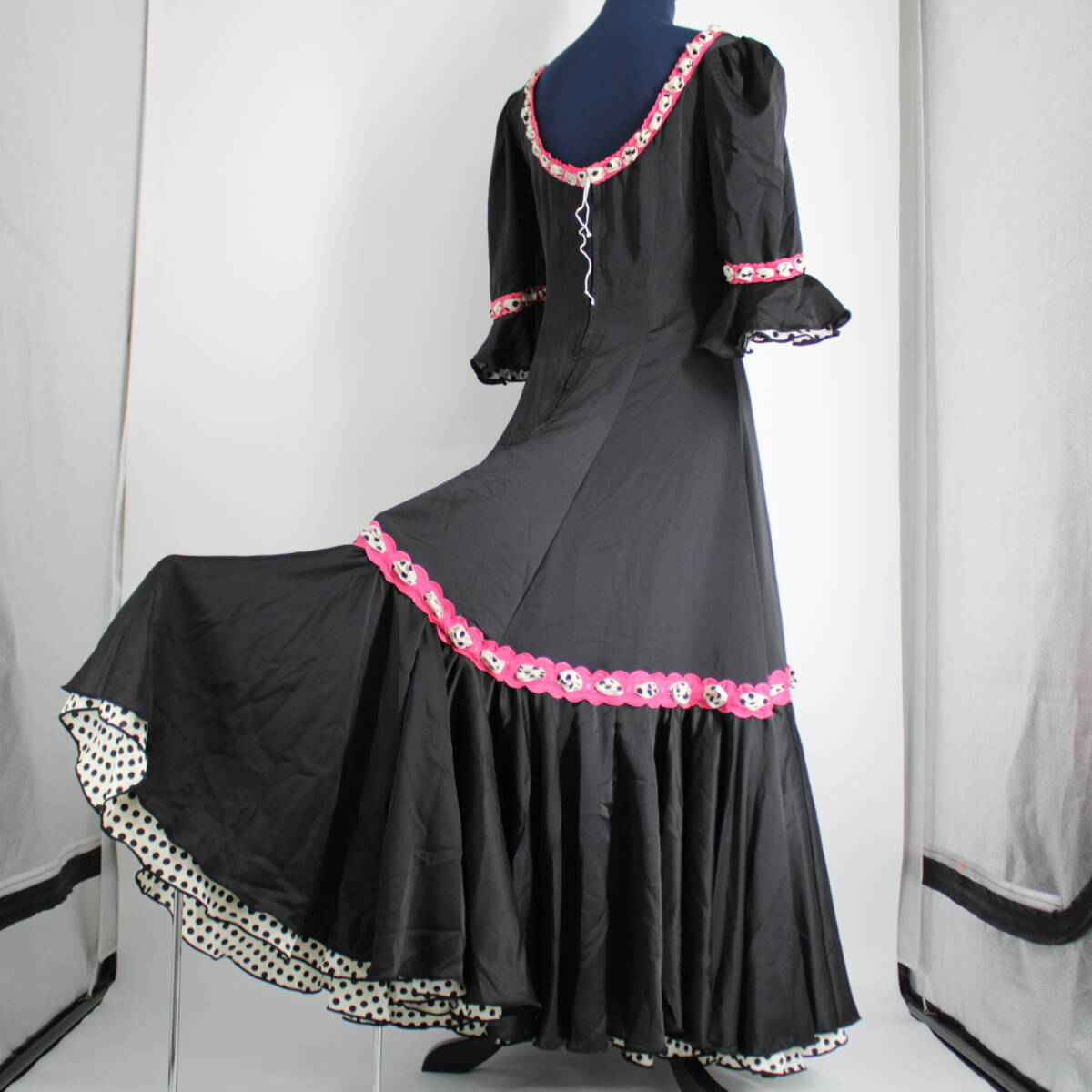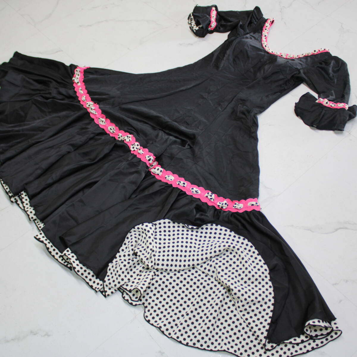 | 商品説明 | 【詳細】 商品名:フラメンコ衣装 ワンピース ドレス ドレス:背面ファスナー仕様 サイズ表記無し 平置き実測:総丈約133cm(裾~肩部まで) 身幅約40cm ウエスト約37cm ※実測の為、多少の誤差はご容赦願います ・黒×はしごリボン ・部分的なリボンレースがかわいいドレス ・揺れると裾から見えるドット柄もお洒落 ・伸縮性御座いません 【撮影時使用トルソー:女性用トルソー9号(一般的に使用されるサイズです)】 ■トルソーサイズ詳細 肩幅:約37cm バスト:約88cm ウエスト:約66cm ヒップ:約89cm |