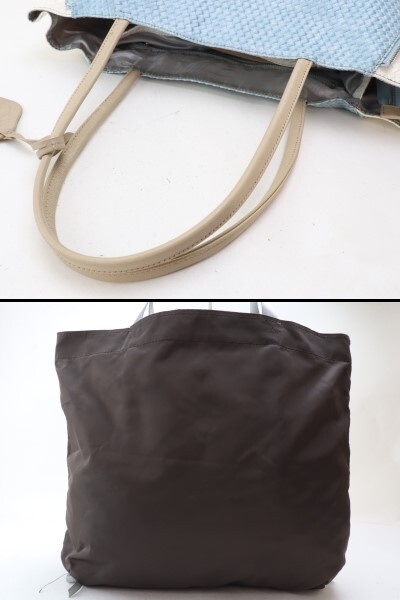 | 2307-99B オサム 2点セット トートバッグ OSAM レザー製 ナイロン製 ライトブルー ブラウン | |