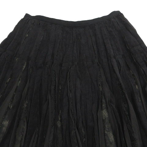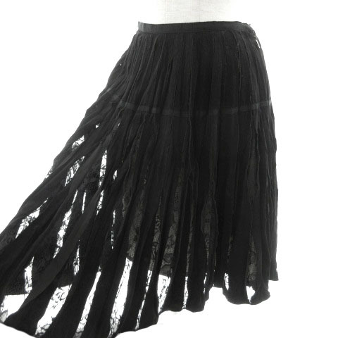 エポカ EPOCA スカート フレア レース切替え スウェード調 ミディ丈 ブラック 黒 38 レディース