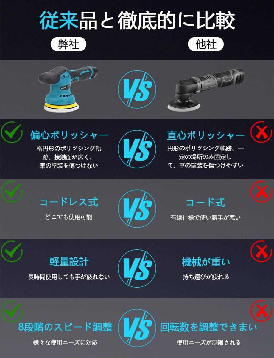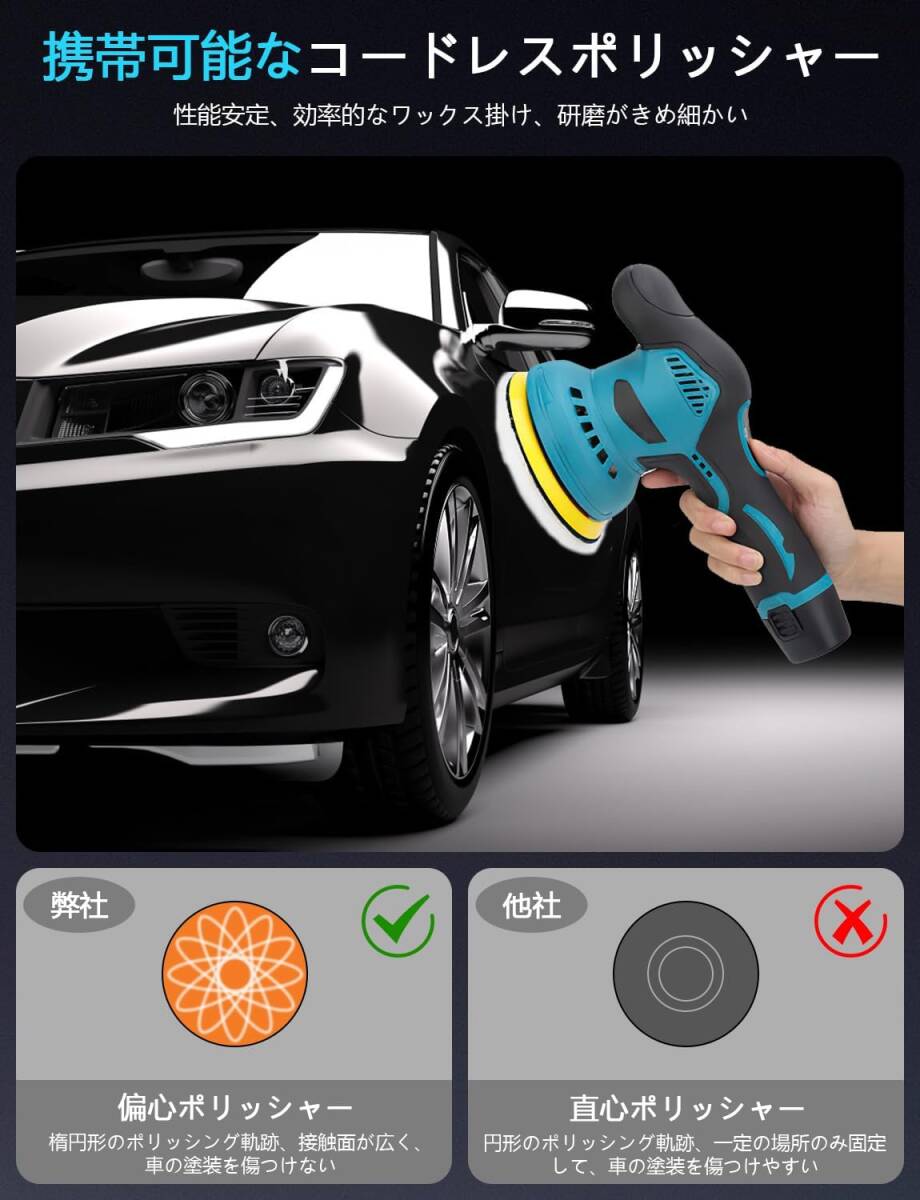 幅広い用途に対応 すべての塗装された車から渦巻き、傷、欠陥、汚れおよび欠陥を磨き、取除くためにかんぜん、あなたの車の輝きを再表示して下さい。また、古い汚れを簡単に落とすことができ、車や洗面台、浴槽などでこのツールを使って掃除することで時間を節約することができます。その他、このコードレスバッファーは、錆取りや木材の研磨のための研磨紙と一緒に使用することができます。