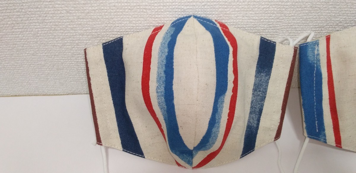 ☆ラスト1点☆廃盤☆ハンドメイド☆マスク 2枚セット☆マスクゴム付☆ワイヤー入り 大人用立体 マスク☆生成りストライプ柄☆