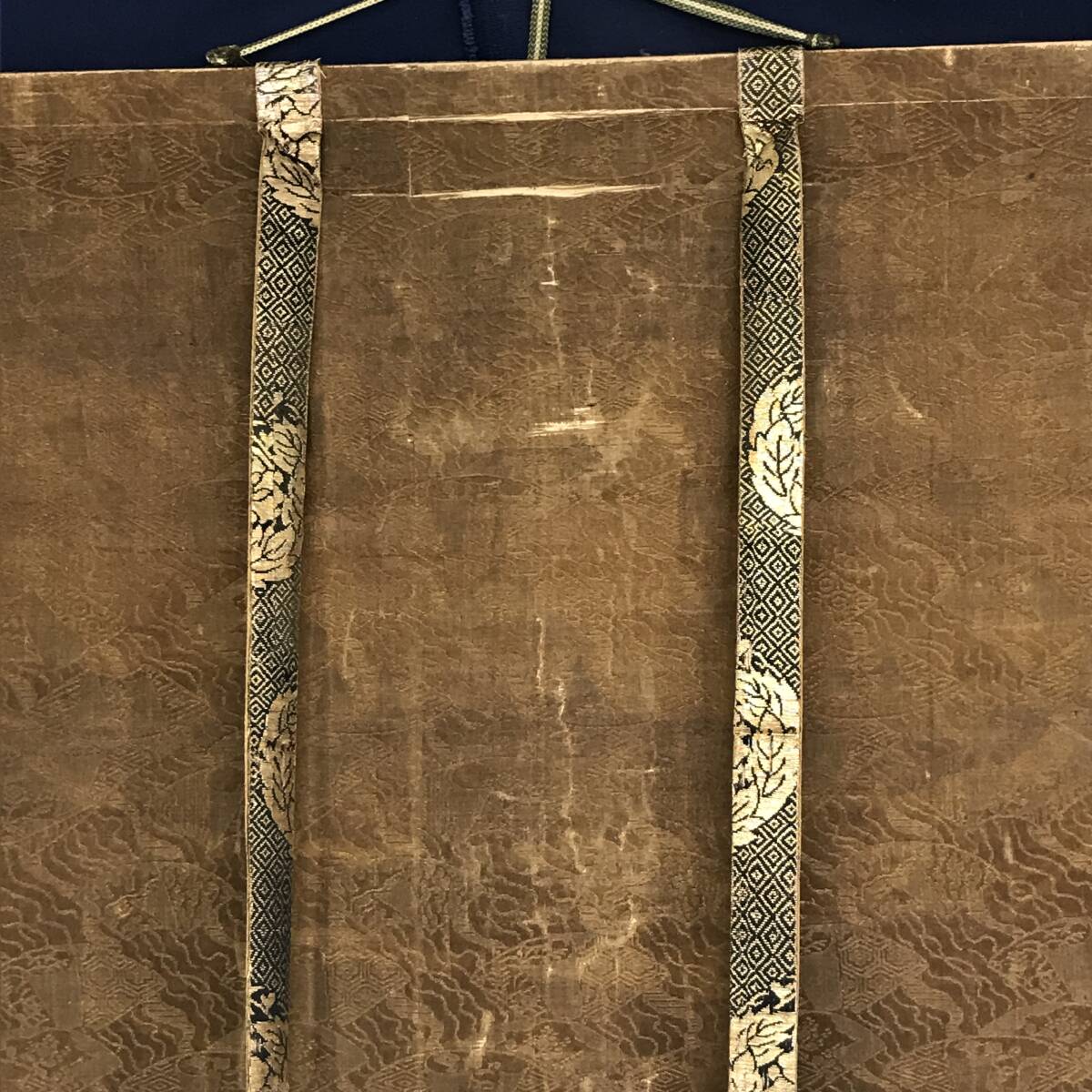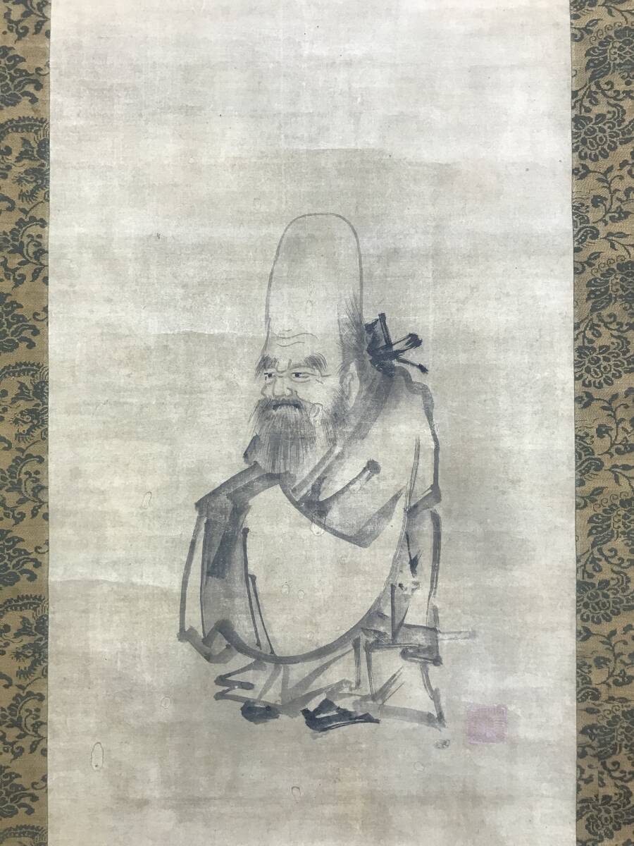 【作品状態】 本紙は紙本です。本紙は時代感あり、薄汚れ、全体に汚れシミ折れ、巻シワあります。表装は時代感あり、薄汚れ、天にホツレ、欠損あります。