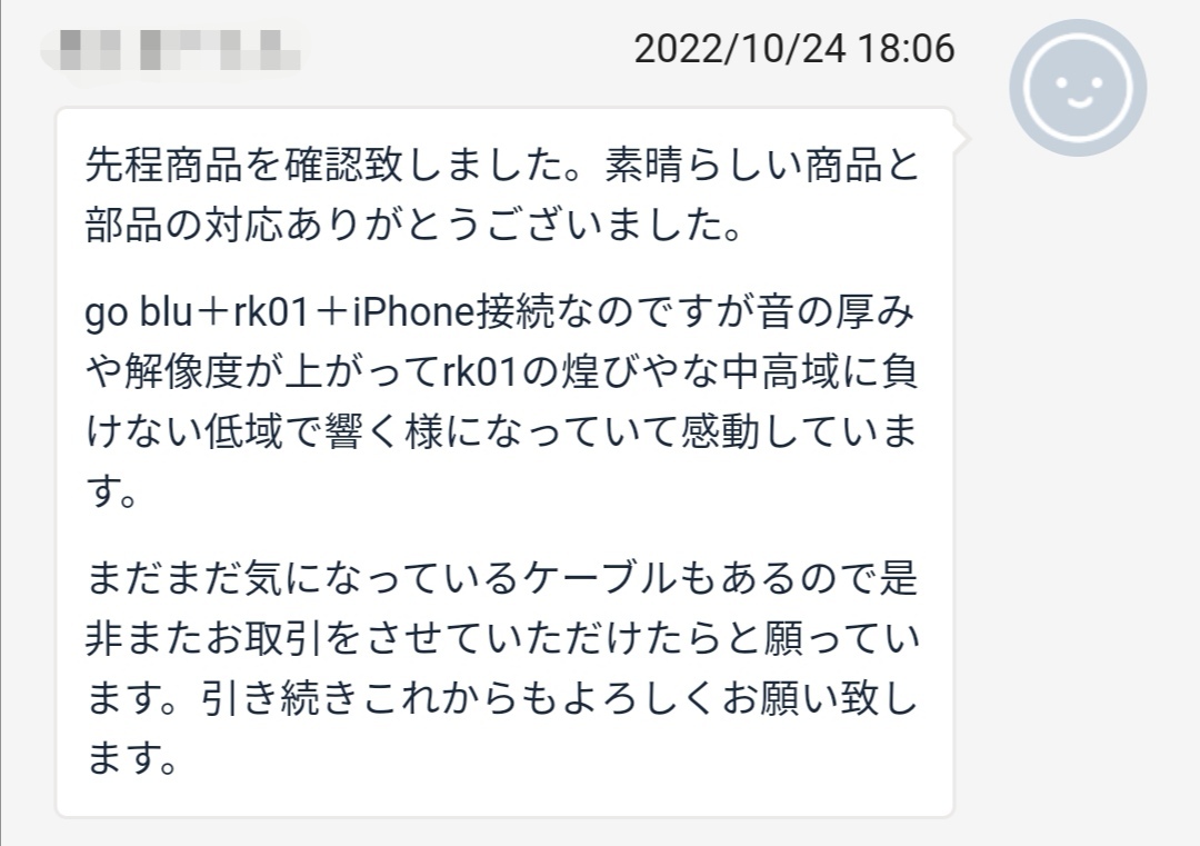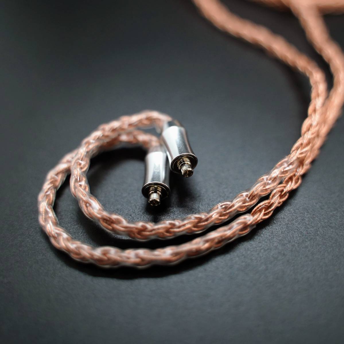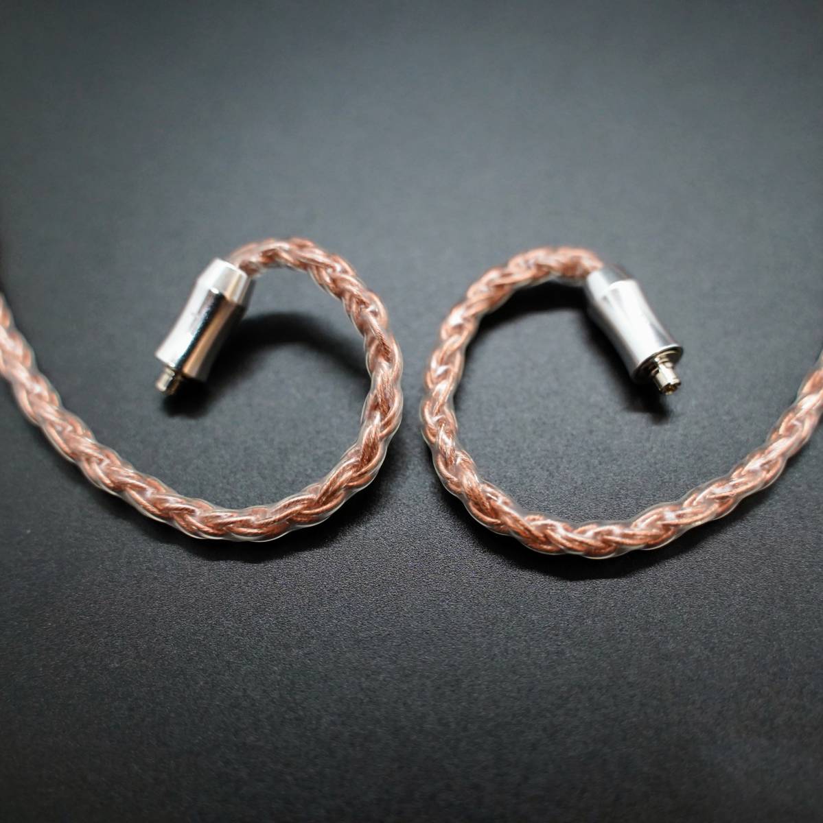 高純度なOCC銅線がやはり歪みなどの違和感がある雑味のないスッキリした音になり、情報量が向上し、よい「濃い音」に感じる傾向があります。当該「純銅ケーブル」も高純度銅線の傾向はしっかり踏襲しており、多くのイヤホンで標準ケーブルからのリケーブルを行うことで1枚空気の膜を取り除いたような明瞭さを感じることができます。古河ケーブルよりクリアなサウンドになることでボーカルなど中音域がより近くで定位し、イヤホンによっては音の厚みの向上も確認できるのではと思います。