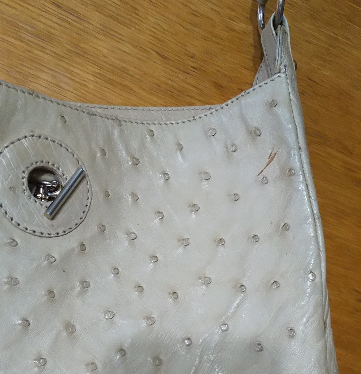このショルダーバッグは、耐久性のある高品質なレザー、オーストリッチで作られており、長期間使用できます。