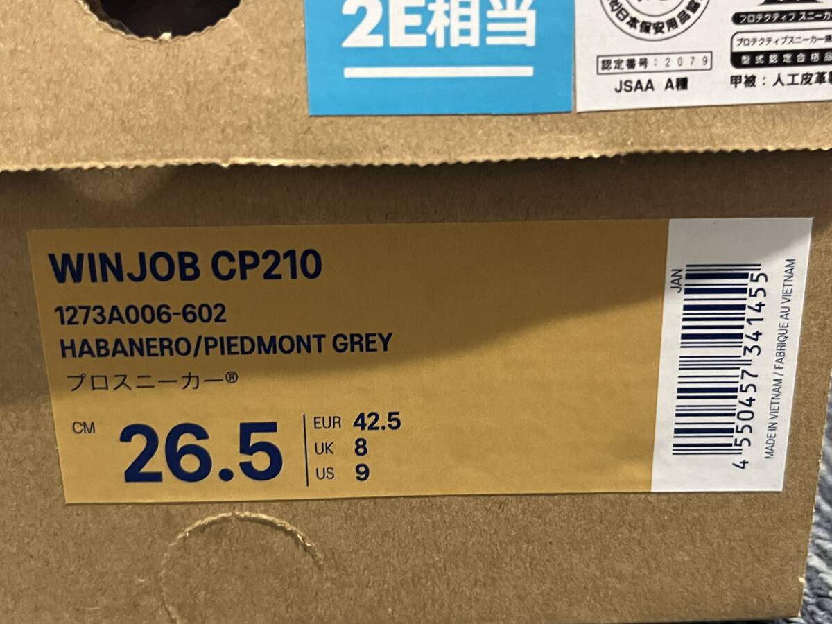 【新品未使用品】ASICS アシックス ウィンジョブ CP210 26.5cm 安全靴 1273A006.602 2E相当 ハバネロ×ピエドモントグレー 4905