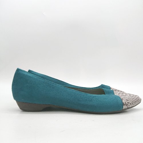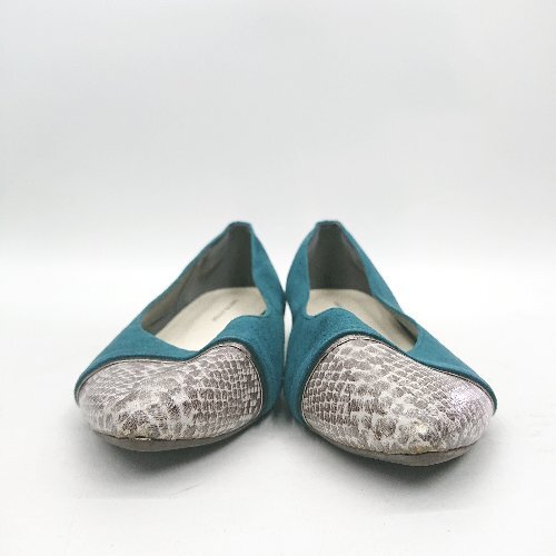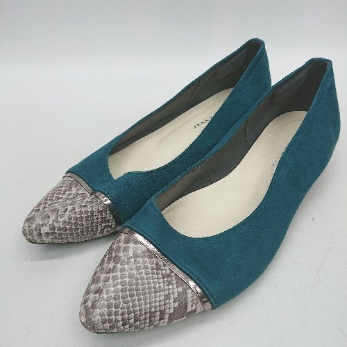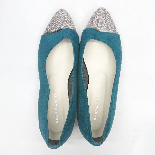 ◇ ⊇ JELLY BEANS パイソン柄 切り替えデザイン フラットシューズ サイズ23.5 グリーン シルバー系 レディース E