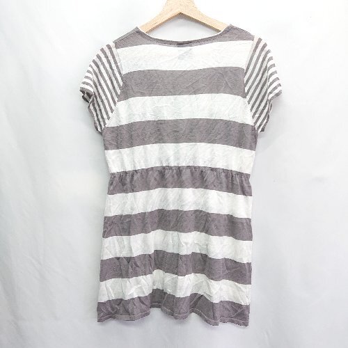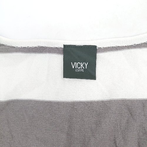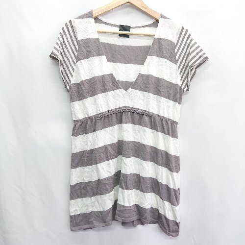◇ ⊂ VICKY ビッキー ボーダー柄 半袖 ニットチュニック サイズ2 ホワイト グレ- レディース E