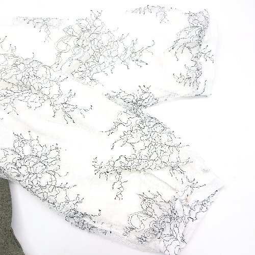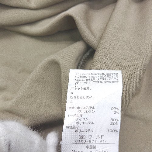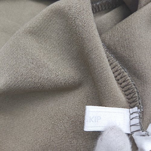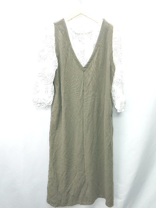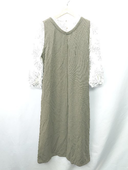 ◇ ⊇ DRESKIP メッシュスリーブ 花柄 長袖 ロング丈 ワンピース サイズL カーキ ホワイト系 レディース E