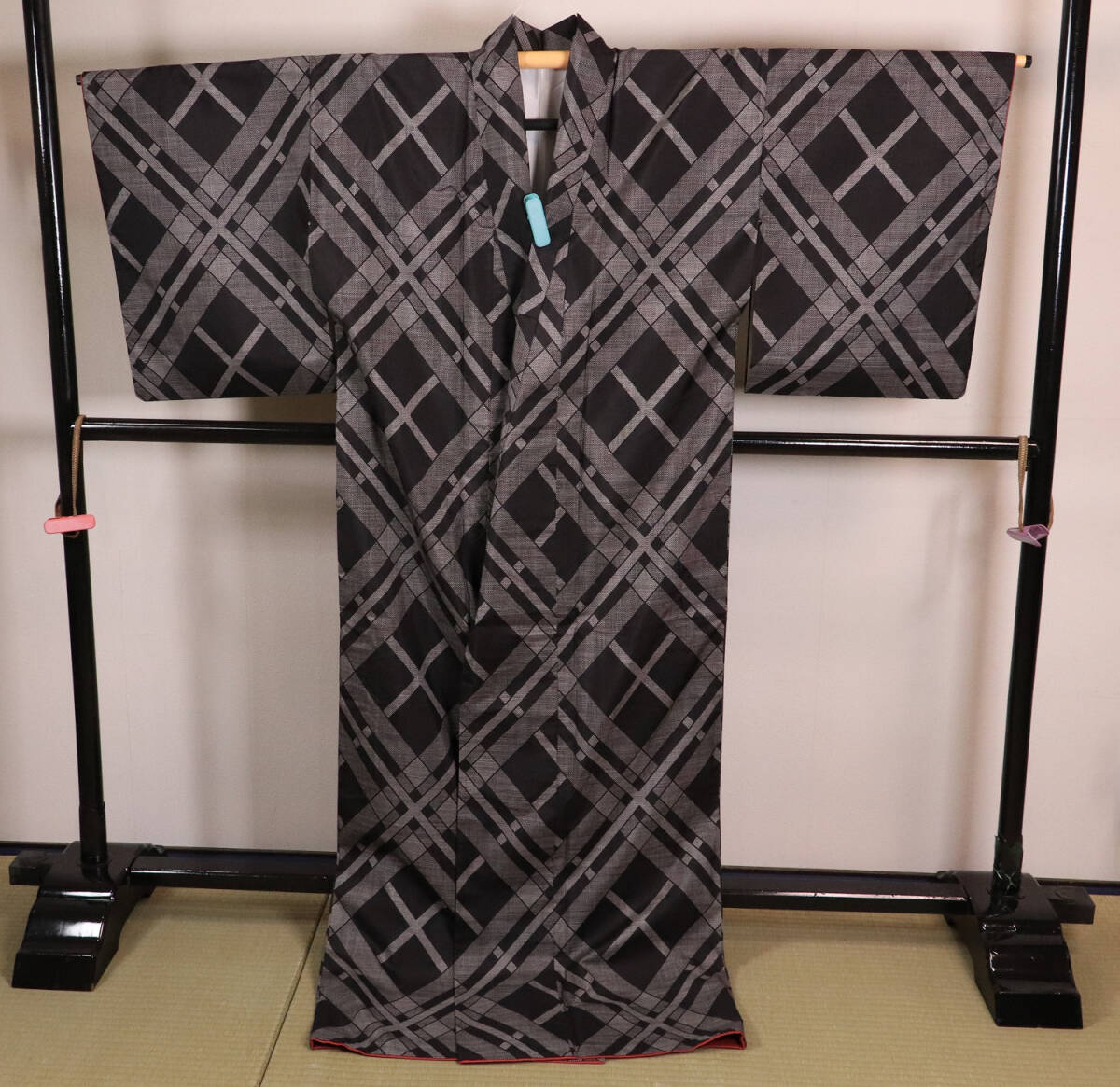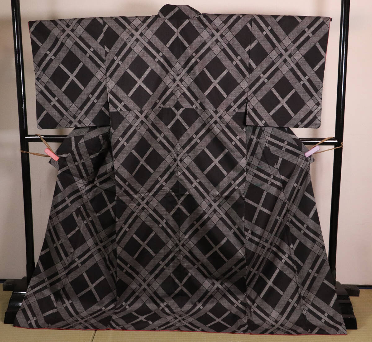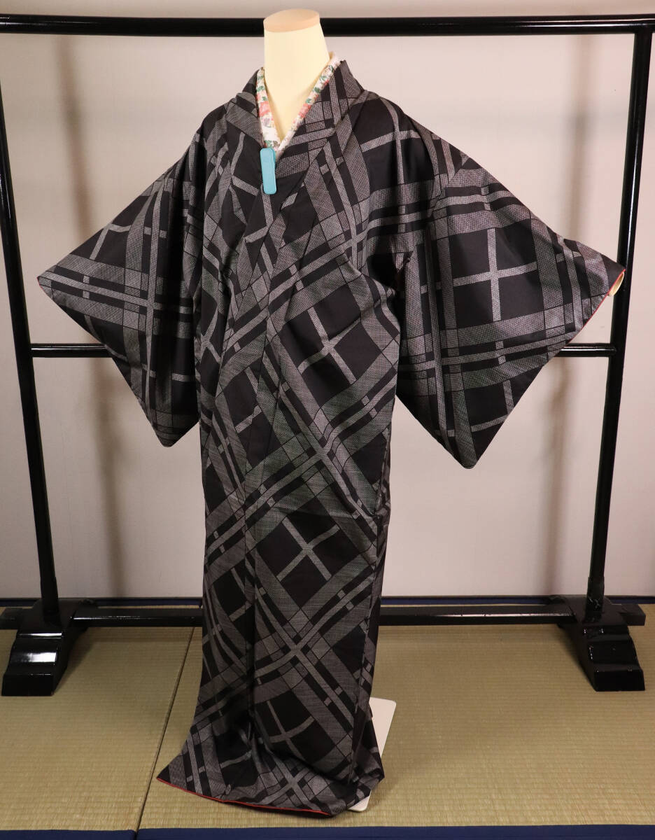 ◇大島紬 正絹 着物 肩身丈154cm チェック柄 和装 和服 中古【MA226】◇