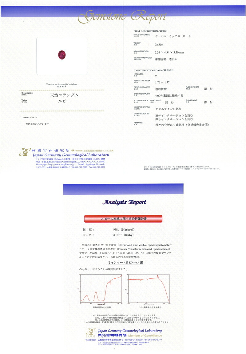 | 宝石 | ルビー Ruby | 重量 | 0.63CT | |