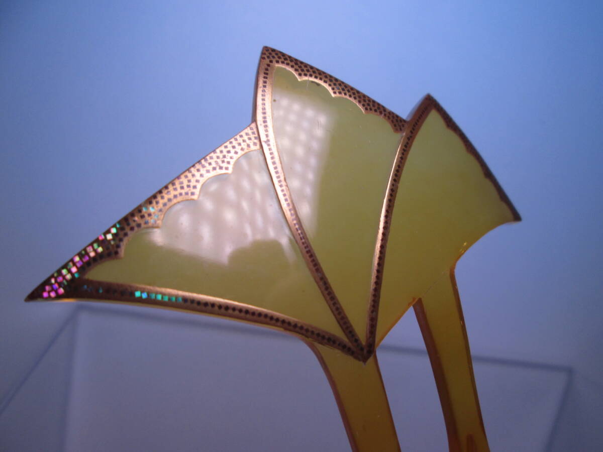 【江月】アンティーク・本べっ甲 螺鈿細工 金蒔絵の綺麗なかんざし