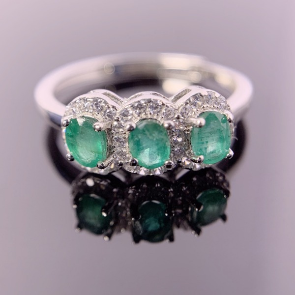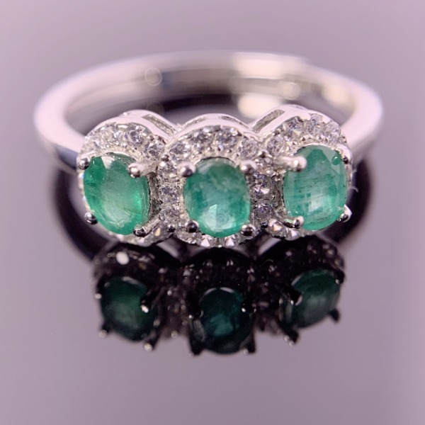 (証明書付き)女性用天然エメラルドシルバーリング、婚約指輪、925スターリングシルバー、ウェディングギフト