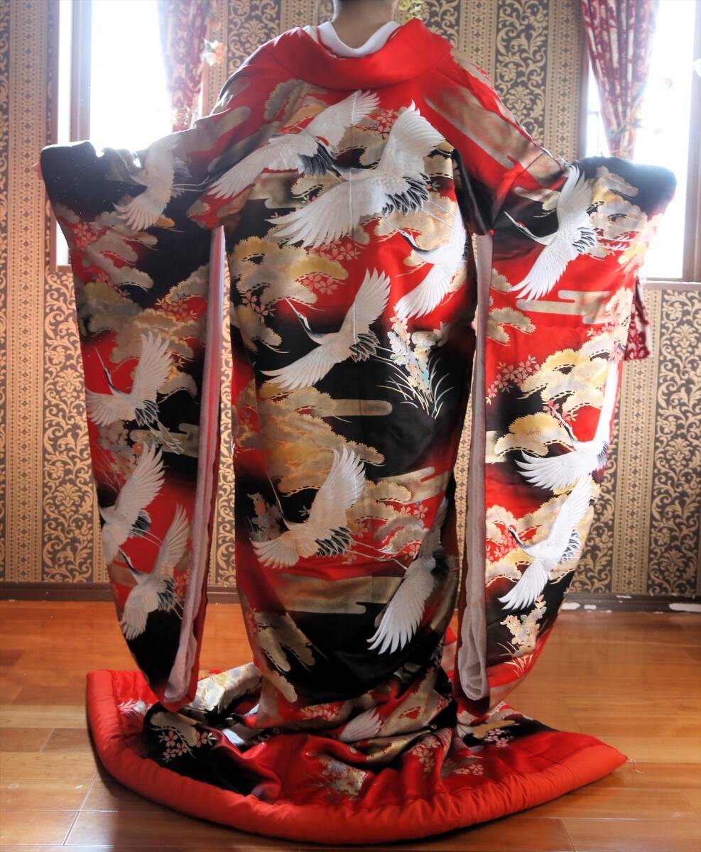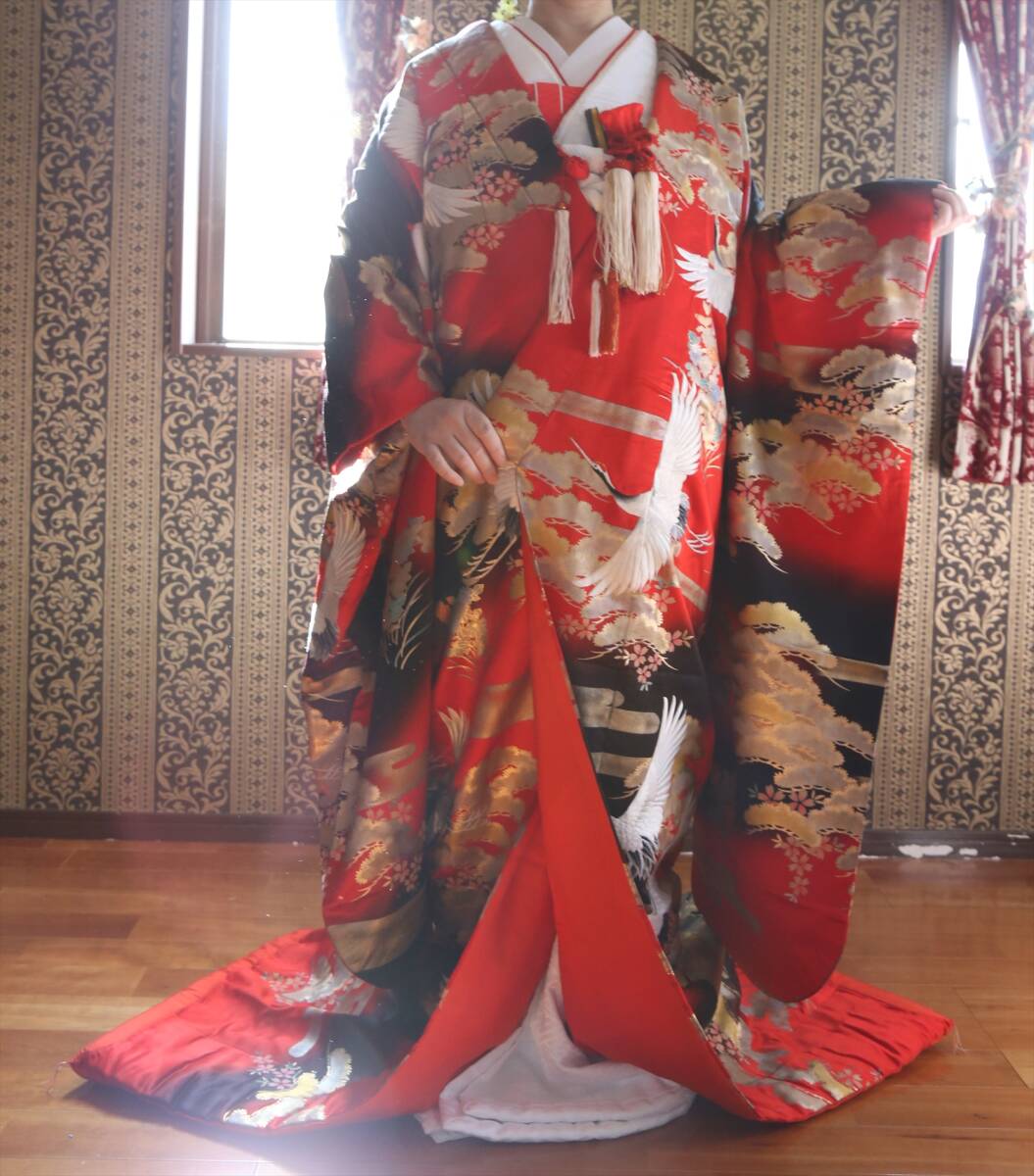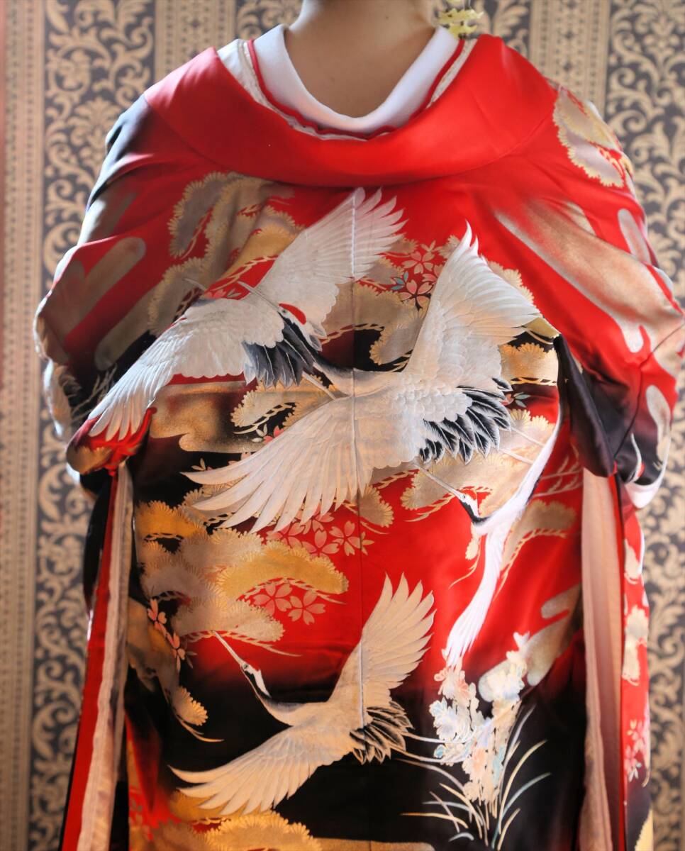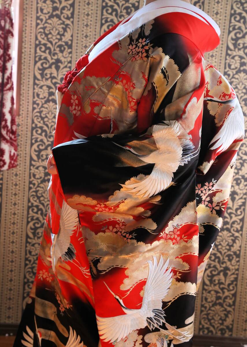 18和装ウエディング用婚礼衣装色打掛ブライダル衣装赤黒金銀鶴箔