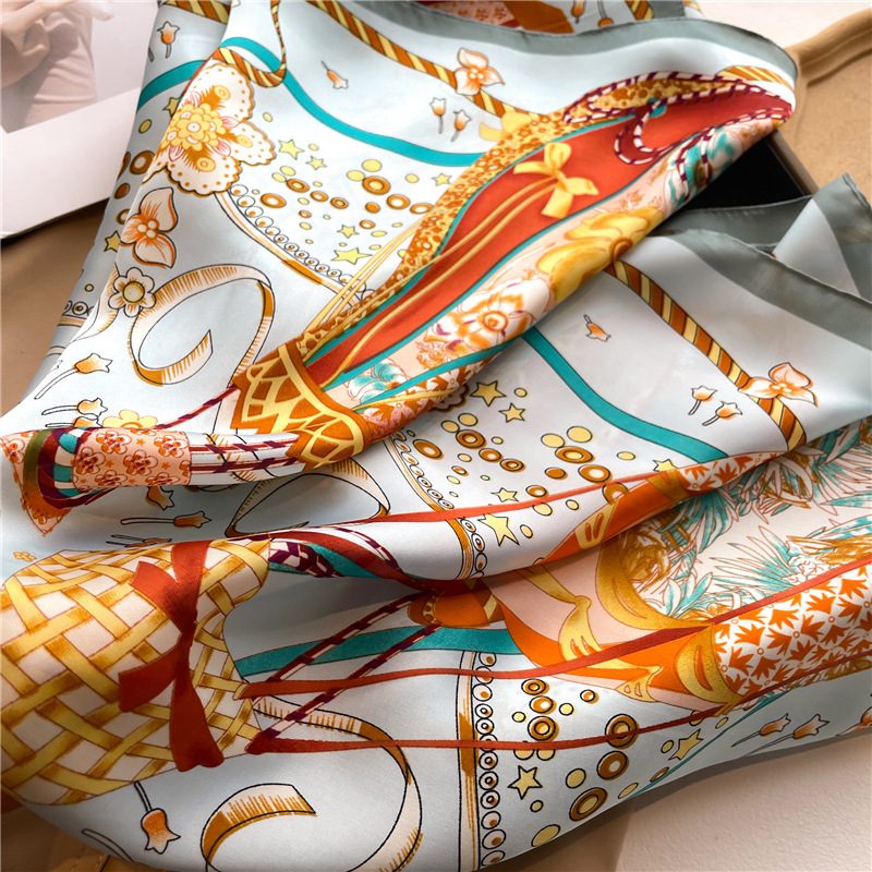 【C-96】新品 レディース 正方形70cm スカーフ 巻き方 首元 おしゃれ 飾り 春夏 シルク調 ストールバックスカーフ
