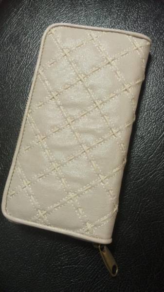 ◆ラウンドファスナータイプ♪収納たっぷり刺繍キルティング長財布♪真ん中ファスナー付小銭入♪真ん中から両側に仕切りが1っずつ付いて両外側はカードが入る仕切りが合計20♪落ち着いたベージュ系