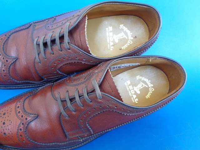 管理番号◇ 14530 商品名◇REGAL Imperial Grade ウイングチップ 正規品 サイズ◇ サイズは24 1/2、アウトソール29cmです。 素人採寸ですので多少の誤差はご了承下さい。 状態◇ 10段階で5程度。 使用感がありますが、着用に致命的なダメージはないと思います。アッパーの大きな傷もなく、かかとのすり減りもありません。 個人差がありますので、中古ということをご理解いただける方のみ入札お願いします。 付属品◇ 箱なし。 | |||