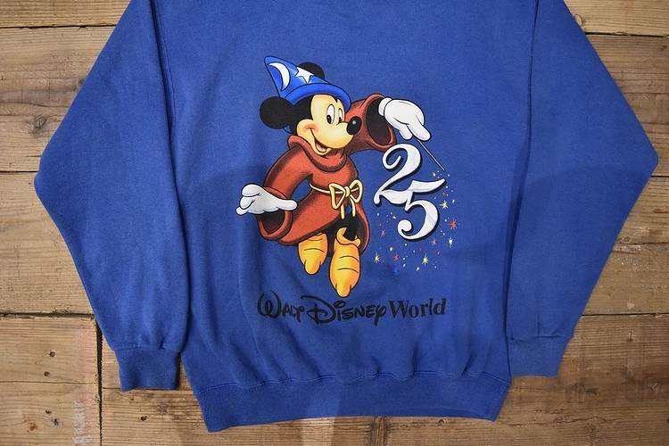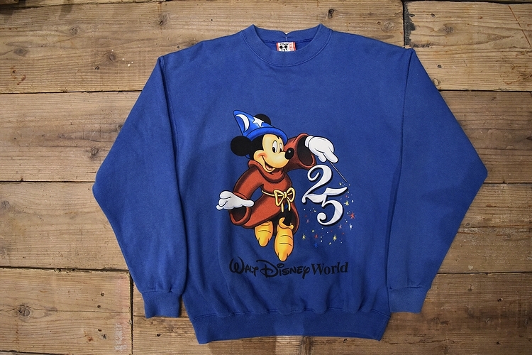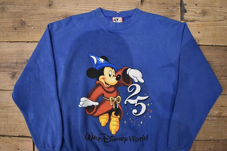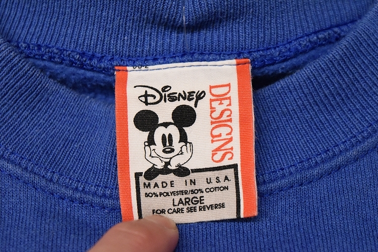 グッドプリント◎USA製ビンテージDisney DESICNSボディクルーネックミッキープリントスウェットLブルー系アメリカ製アメカジ キャラ物t169