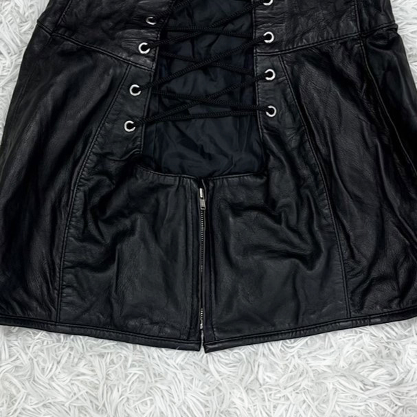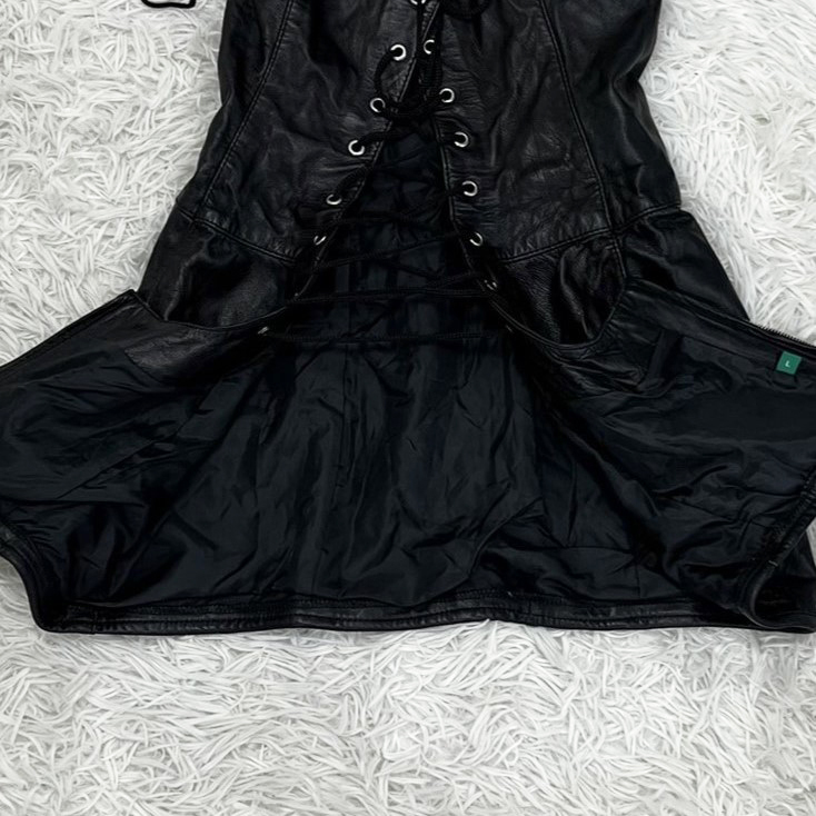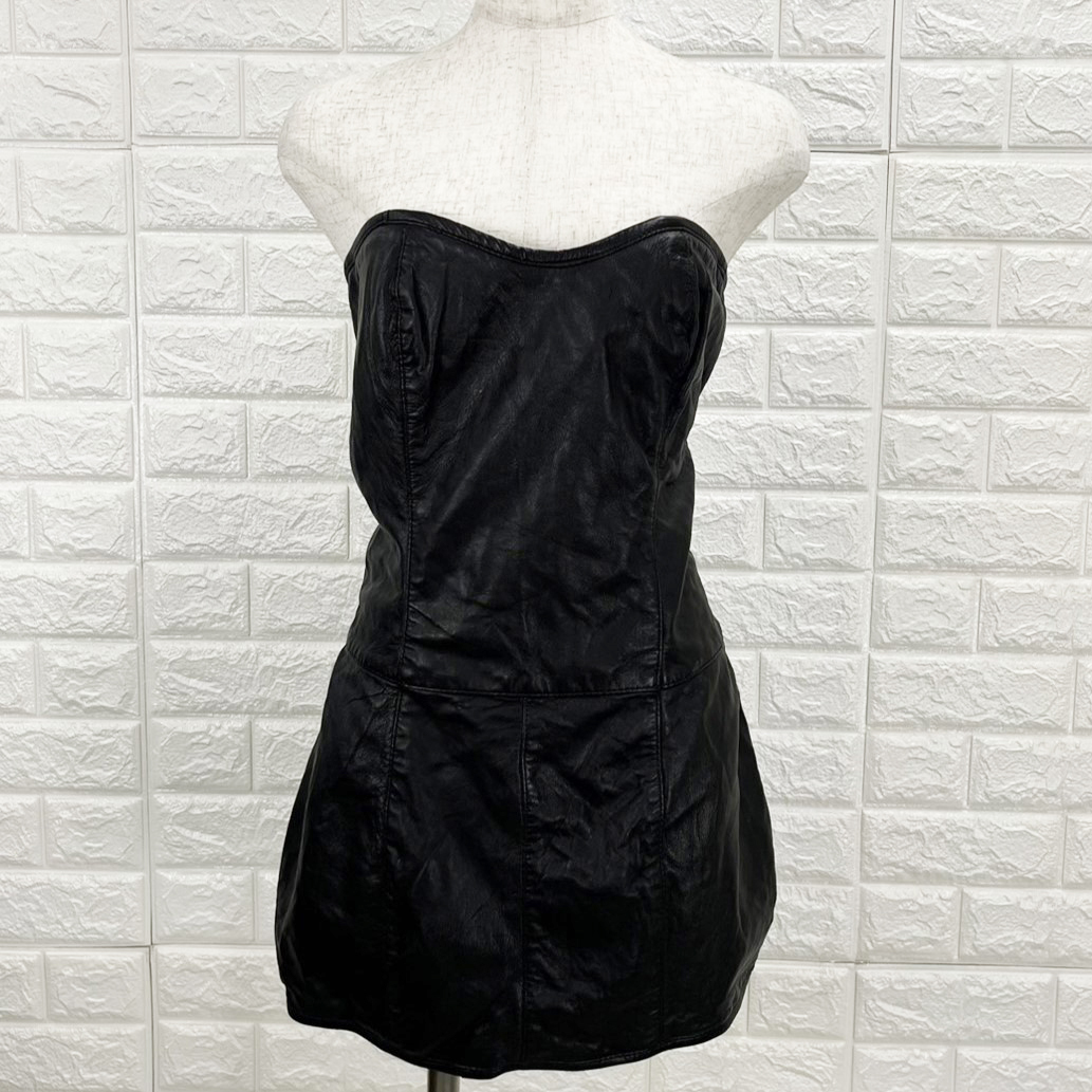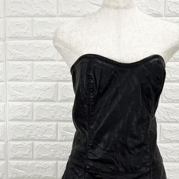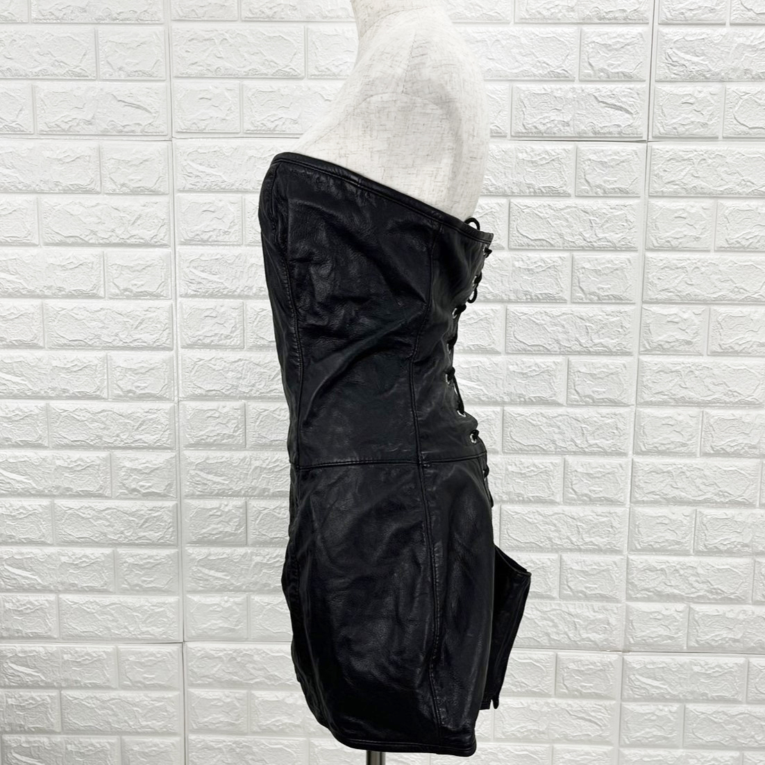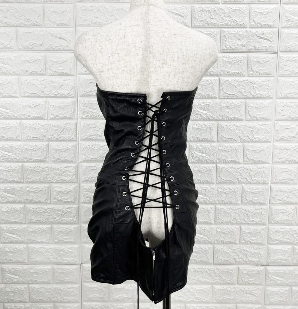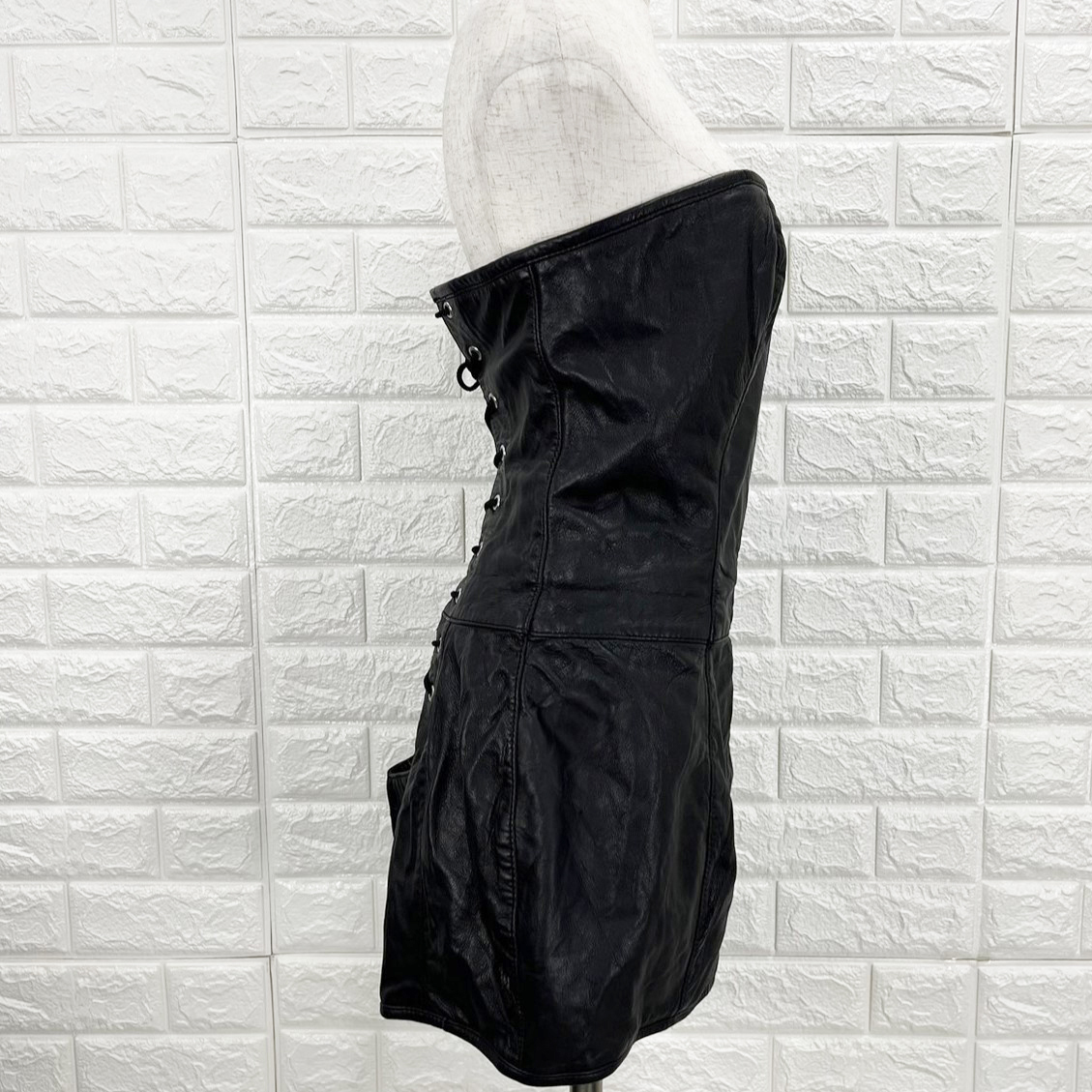 【A2555】コルセットワンピース ビスチェ ボンデージファッション ブラック 編み上げ レザー調 ストラップレス 背中開き Lサイズ