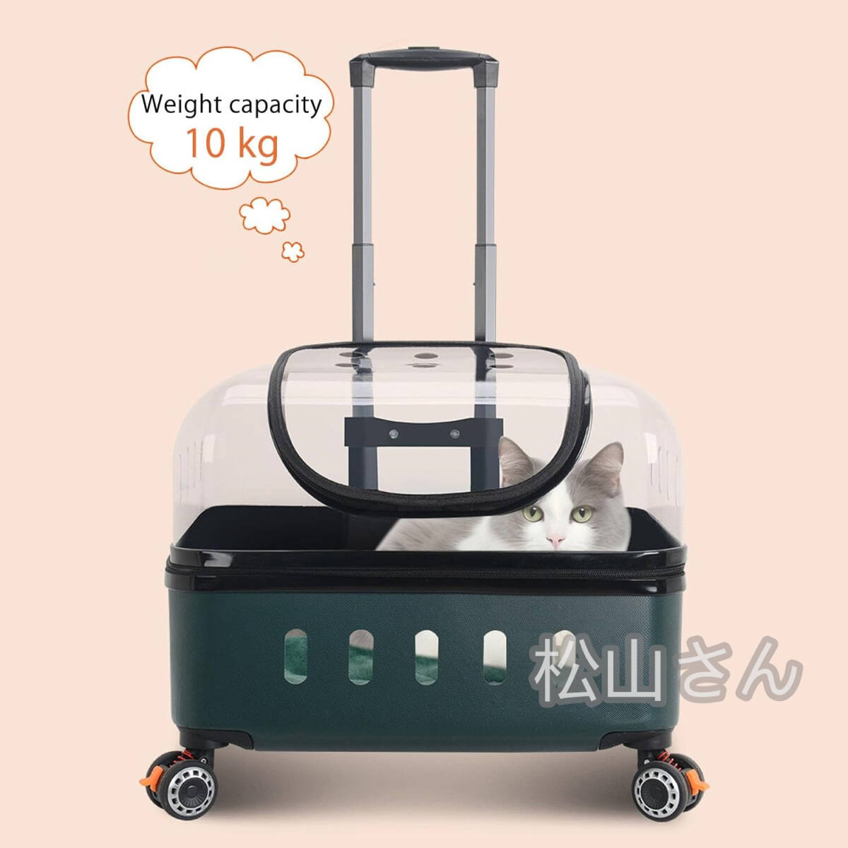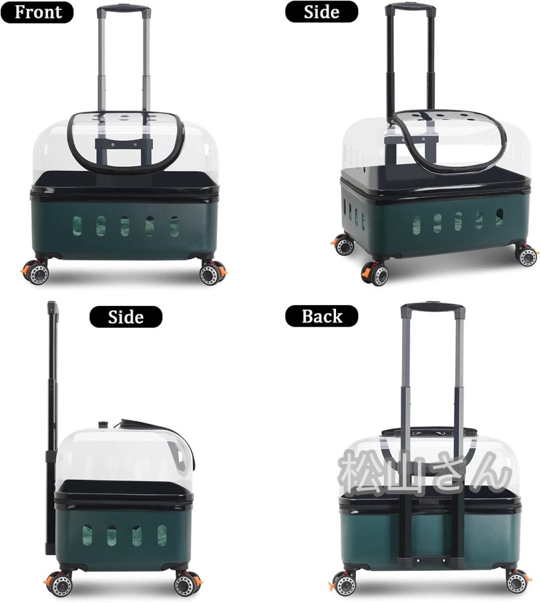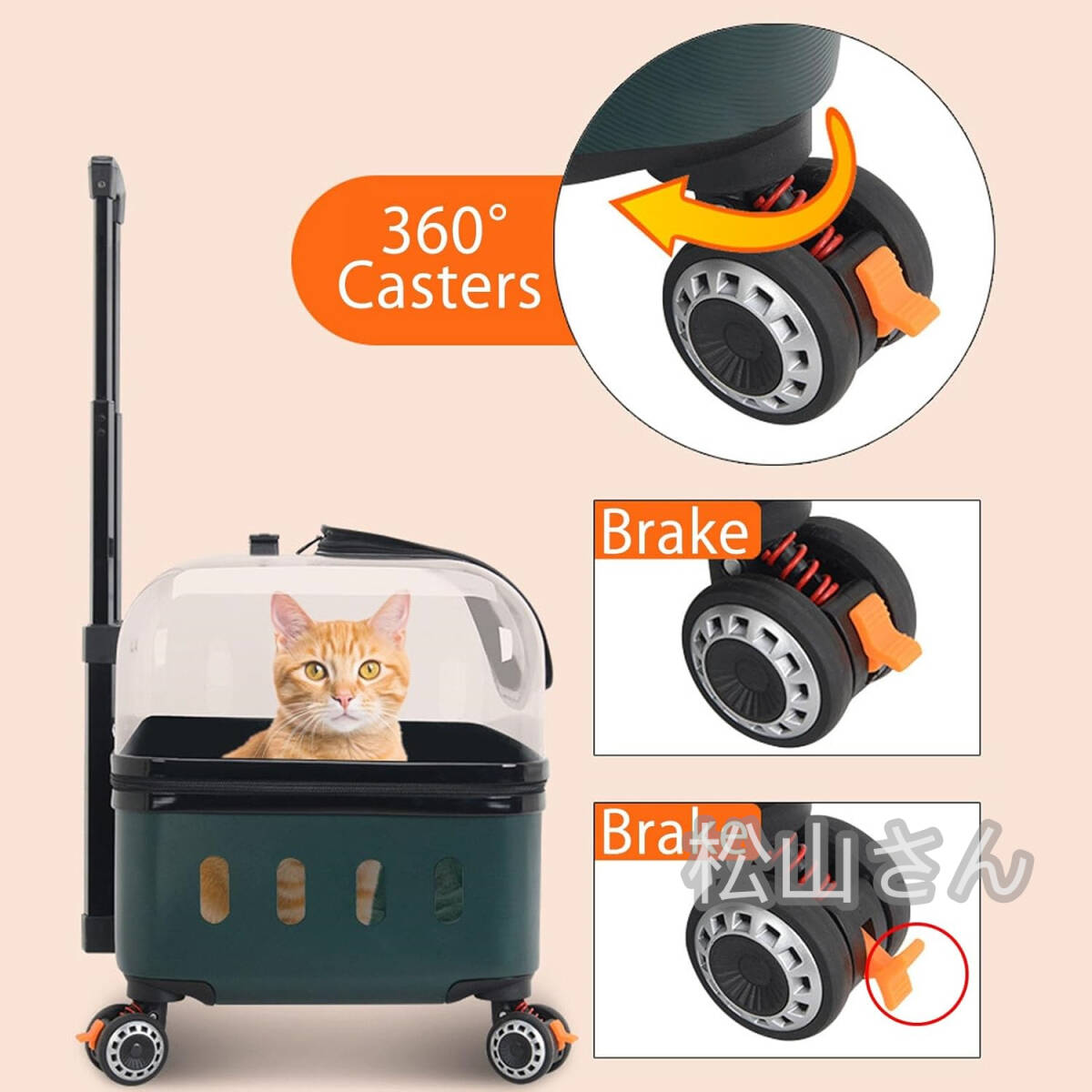 車輪付きペットトロリーケース ペットキャリーカート 猫用 小型犬用 通気性 多機能 大きなスペース付き 透明 多機能