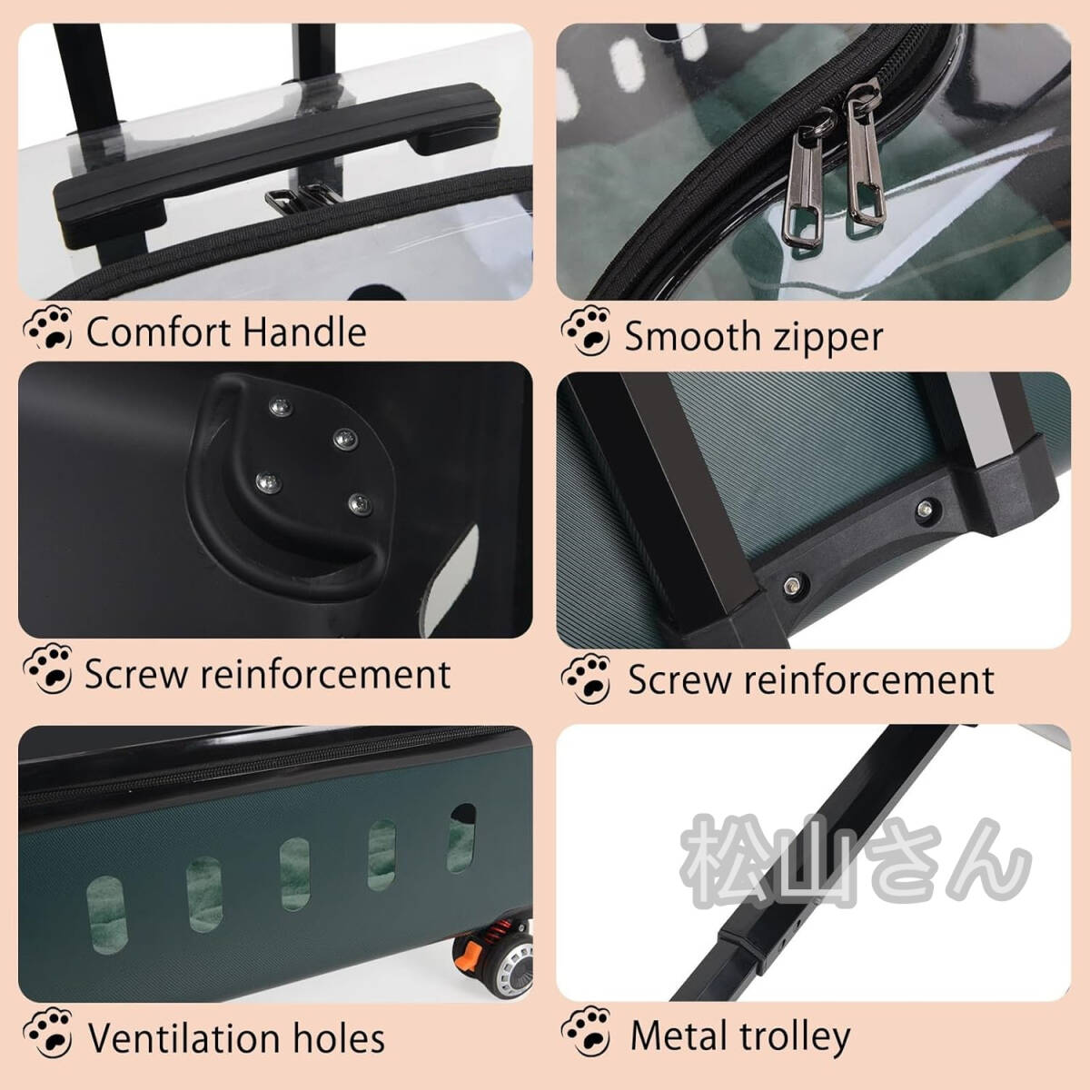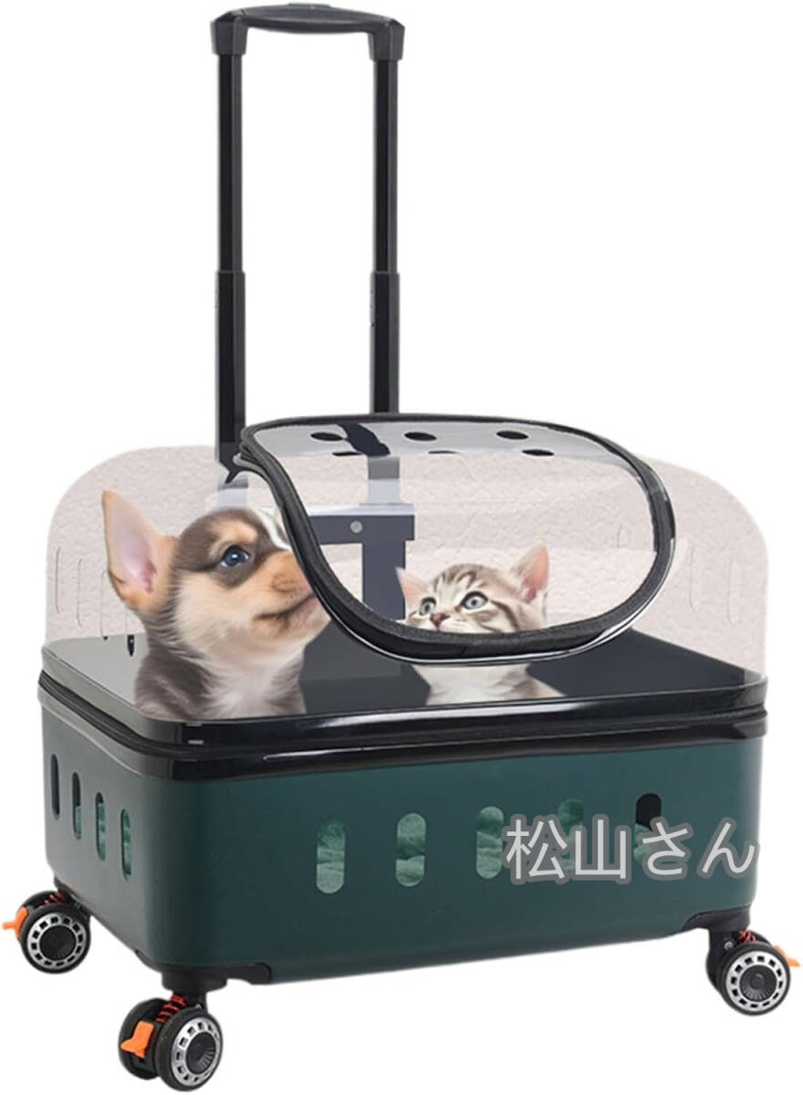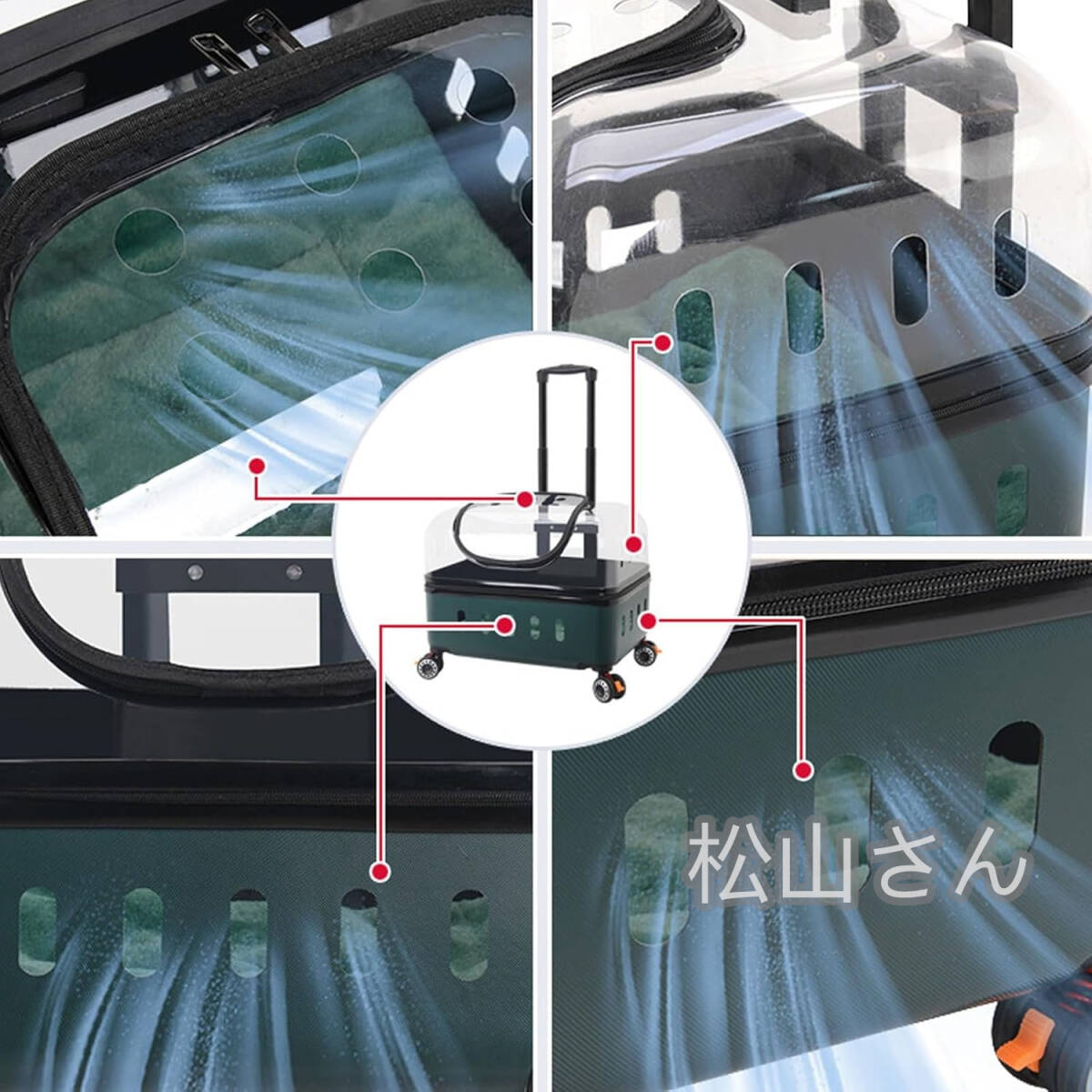 車輪付きペットトロリーケース ペットキャリーカート 猫用 小型犬用 通気性 多機能 大きなスペース付き 透明 多機能