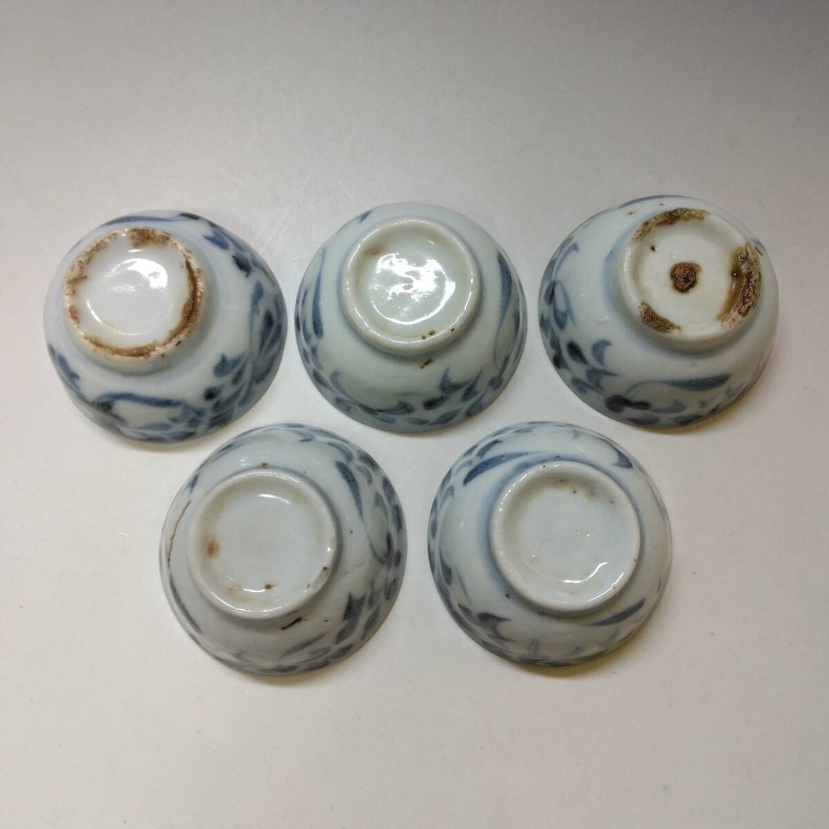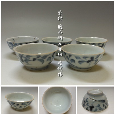 【S-143】染付 煎茶碗5客組 煎茶道具 時代物 | |||