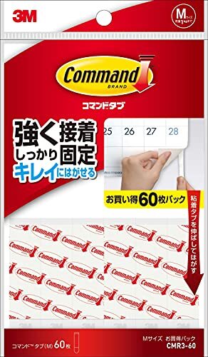d.Mサイズ60枚・7. Mサイズ 60枚 Mサイズ共通×60枚 CMR3-60・・Color:7. Mサイズ 60枚・用途:カレンダー・大型ポスターなどの掲示・数量:タブ Mサイズ 60枚入り・サイズ(幅x縦)/色:16x70mm/白・耐荷重量:1kg・掲示物や壁などに傷やべたつきを残すことなくはがせます。強力な粘着力で壁などにしっかり貼ることができ、はがしたい時には引きのばすだけできれいにはがせる両面テープ(タブ)です。 掲示用として、画びょうやピンがわりに使えます。 オフィスや大量使用におすすめのお買い得パックです。 はがすときは両面テープ(タブ)の端を持って、壁面にそって引っ張るだけ。インテリアや壁などを傷めず、のり残しもなくきれいにはがれます。 ※壁紙、凹凸面やざらざら面への使用は不可。
