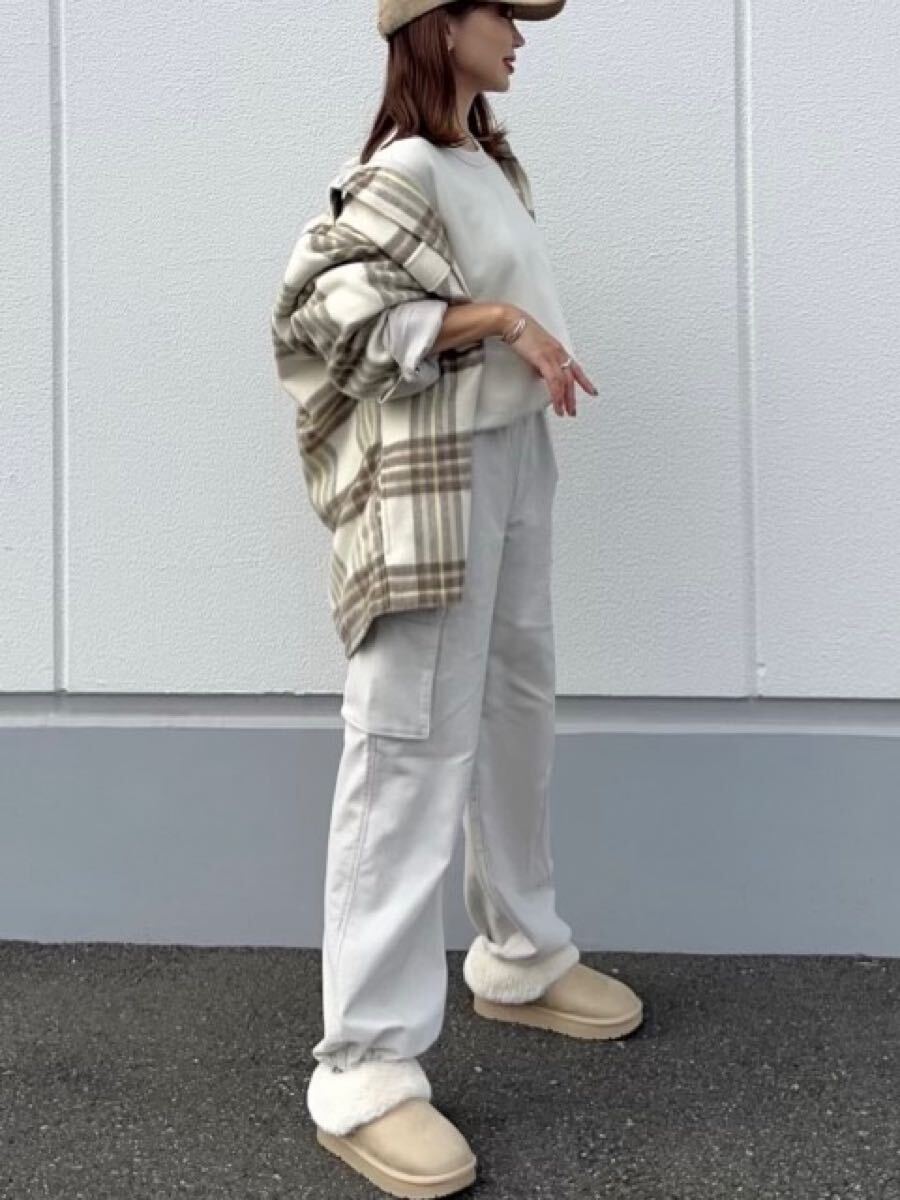 ニットやスウェットの上からでもゆったり羽織れるオーバーサイズシルエットのシャツ。毛足が長く、あたたかみのあるシャギー素材を使用しました。胸ポケットに加え、サイドポケット付きで実用性も兼ね備えた1着です。