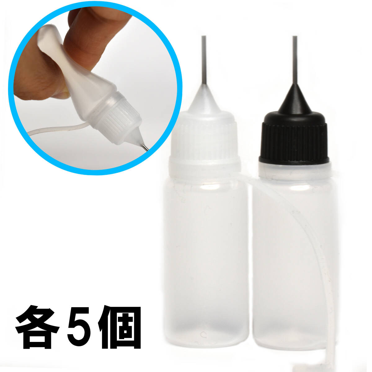 10ml ボトル 各5個 合計10個セット 注液 注油 リキッド注入などに 針つき 白黒