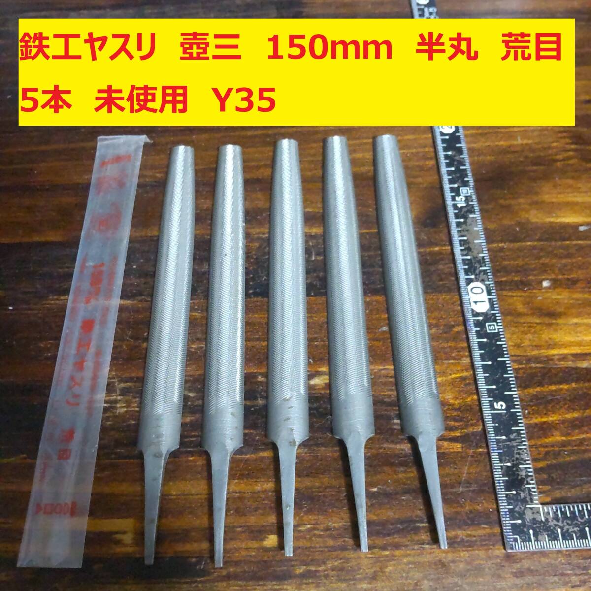 鉄工ヤスリ 壺三 150mm 半丸 荒目 5本 未使用 Y35