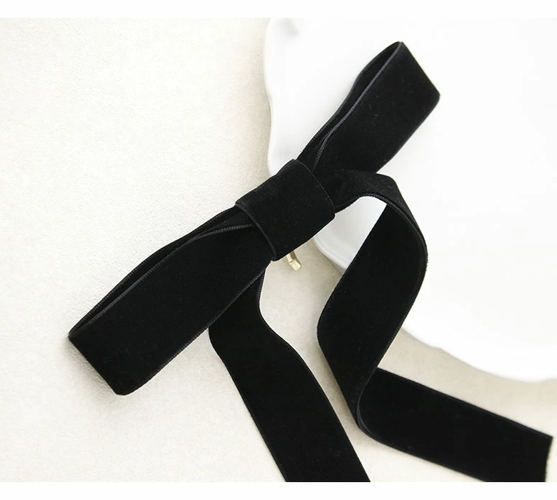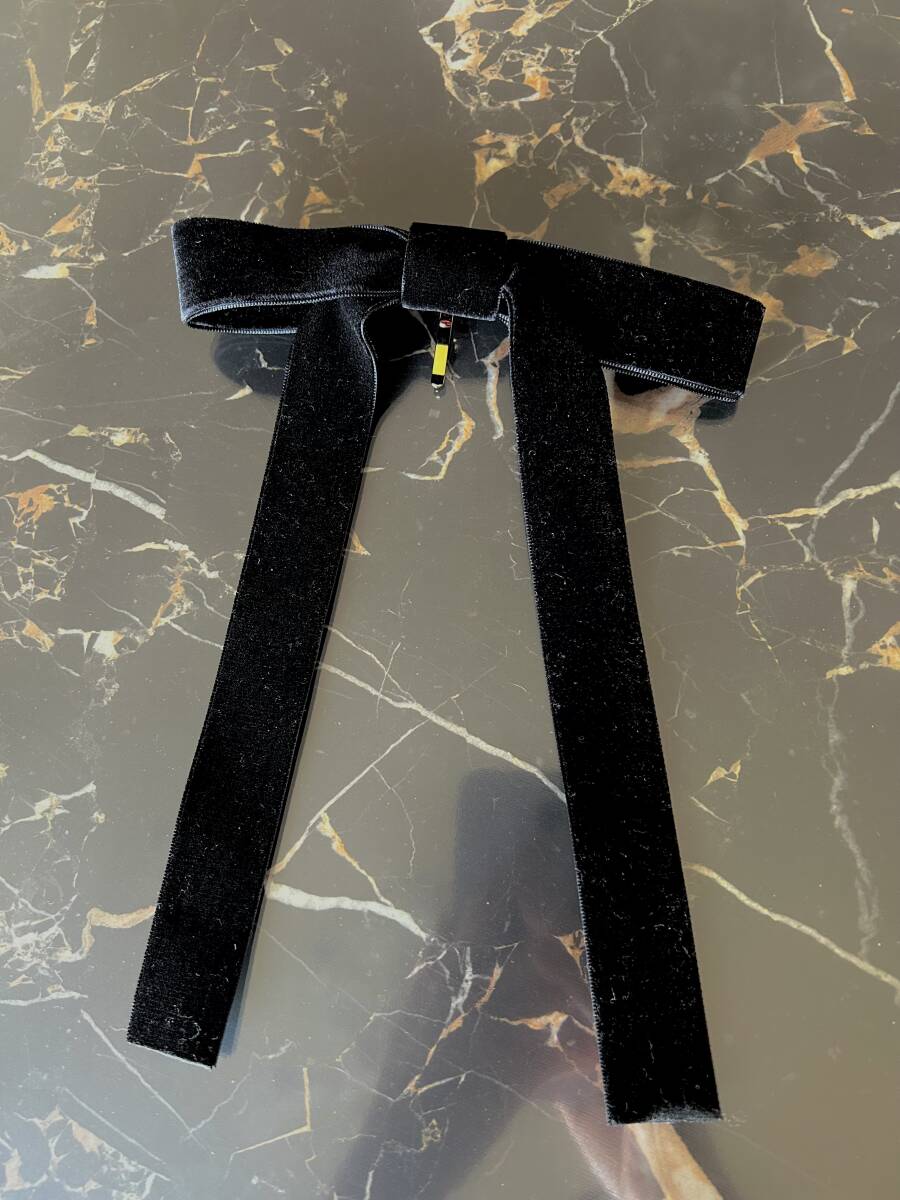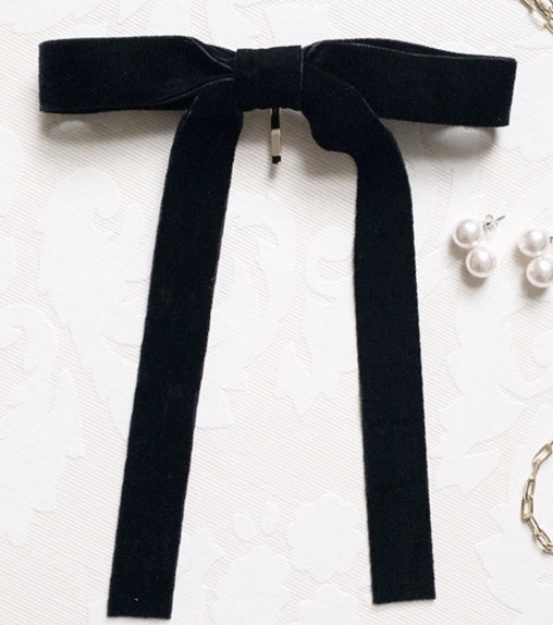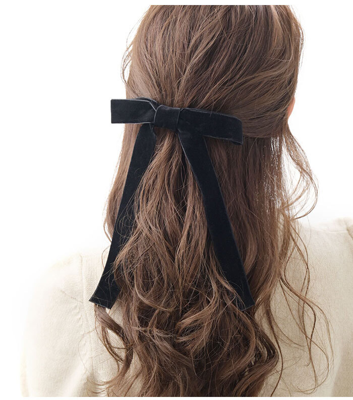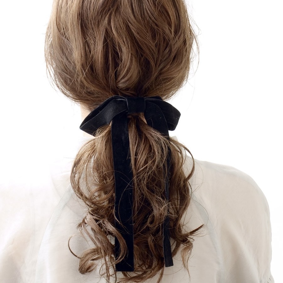 神戸ヴァンテーヌ ヘアカフ ベルベットロングリボン ポニーフック・ヘアクリップ ブラック 黒 ベロア