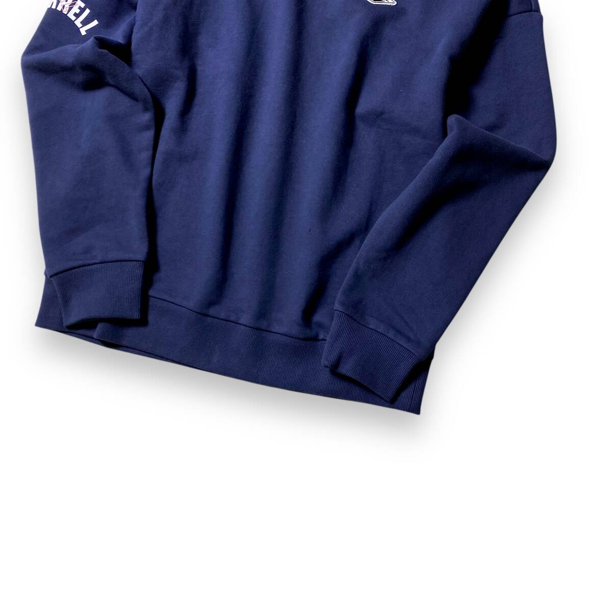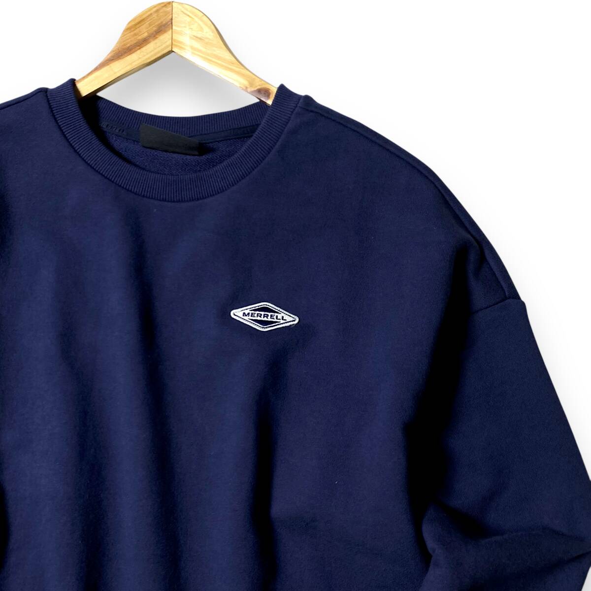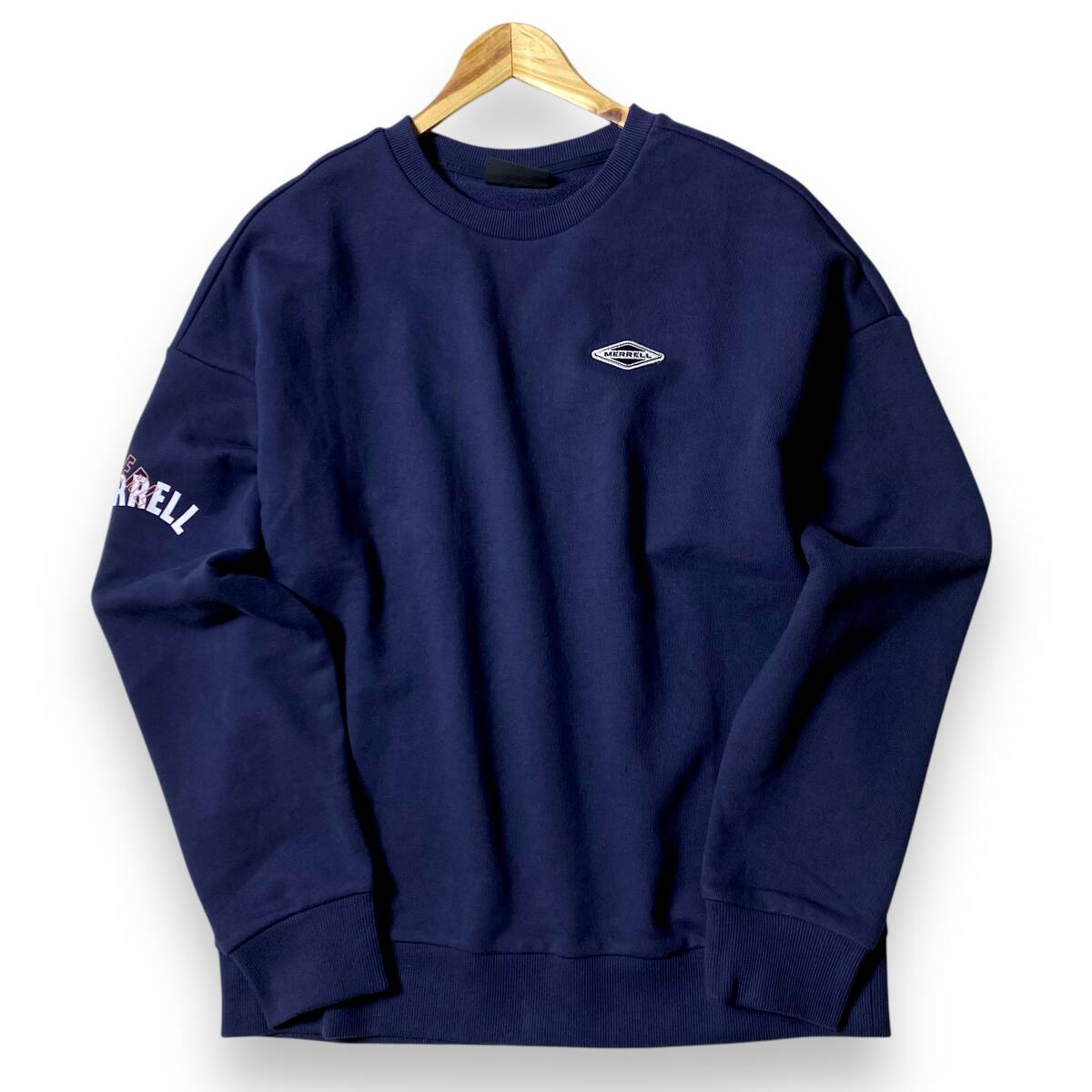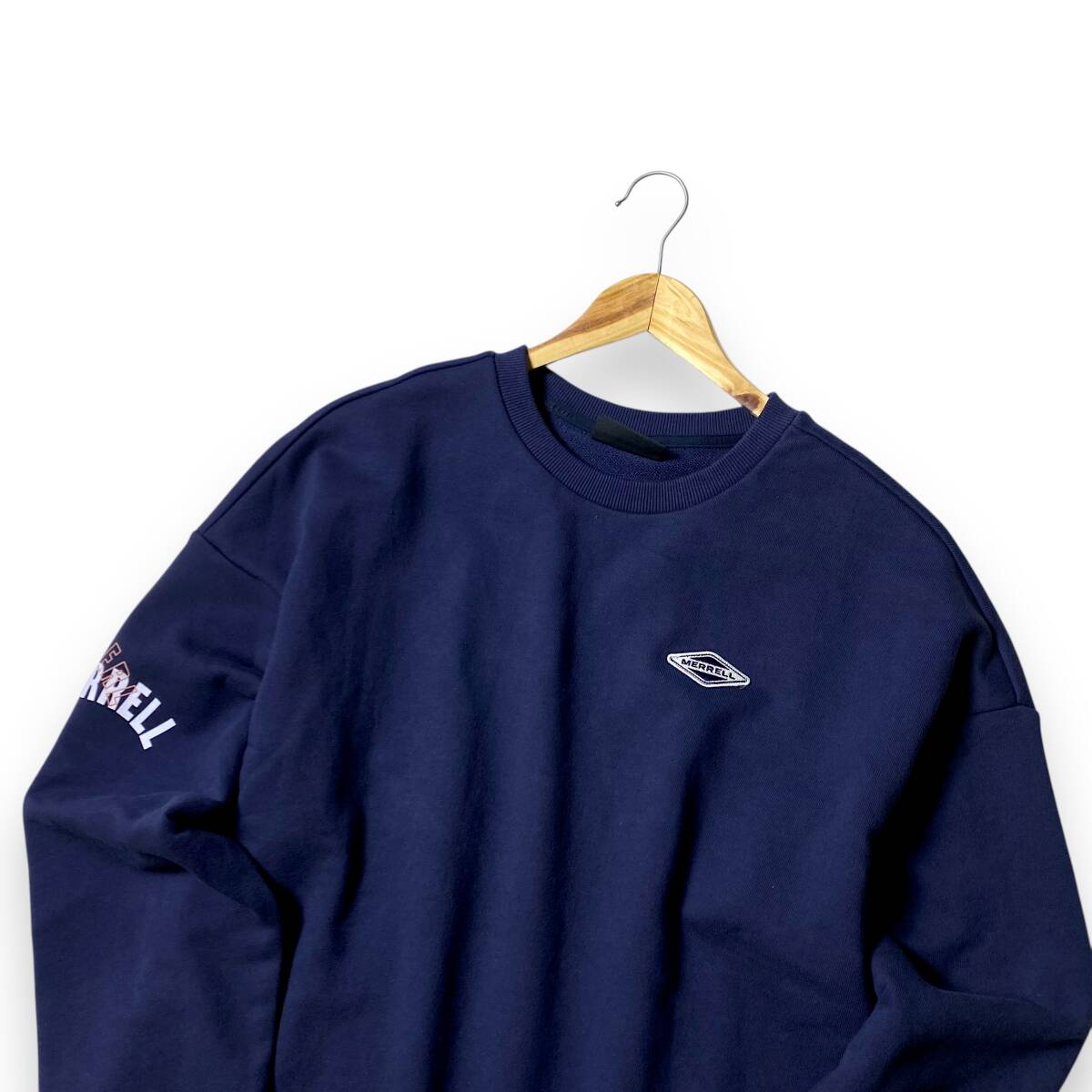 サイズ 95/M 製品寸法 着丈64cm 身幅59cm 肩幅62.5cm 袖丈53cm(ドロップショルダー) 素材 表地:コットン62%ポリエステル38% リブ部分:コットン92% ポリウレタン8% カラー ネイビー系 コンディション 新品・未使用・正規品