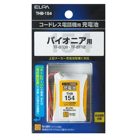 | 仕様 | 適合機種 ・パイオニア:TF-BT08・TF-BT12 同等品 電話機用 2.4V 700mAh ニッケル水素充電池 |