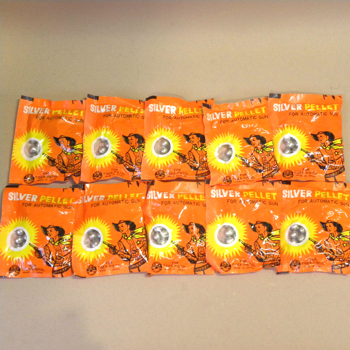 1970年代当時物、タイガー化学工業「銀玉/Silver Pellet」未開封新品10袋セットです。