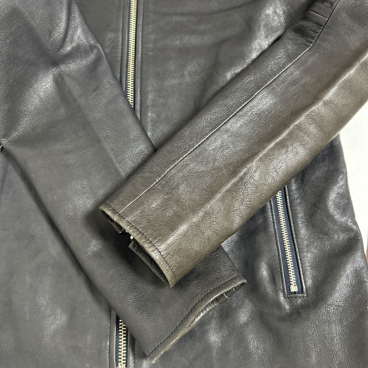 【高品質レザー】 イタリア製の高級レザーを使用しており、耐久性とスタイルを兼ね備えています。 【シンプルなデザイン】 ジップアップスタイルで、カジュアルからフォーマルまで幅広く活躍するアイテムです。 【快適な着心地】 内側は滑らかな素材で、着用時の快適さを提供します。 - 色: 黒 - 素材: イタリアラムレザー - デザイン: ジップアップ - ポケット: 2つのフロントポケット 着丈52cm、身幅44cm、肩幅37cm、肩幅59cm 目立ったダメージ、スレなどもありません。 都内のセレクトショップにて購入。 ご覧いただきありがとうございます。