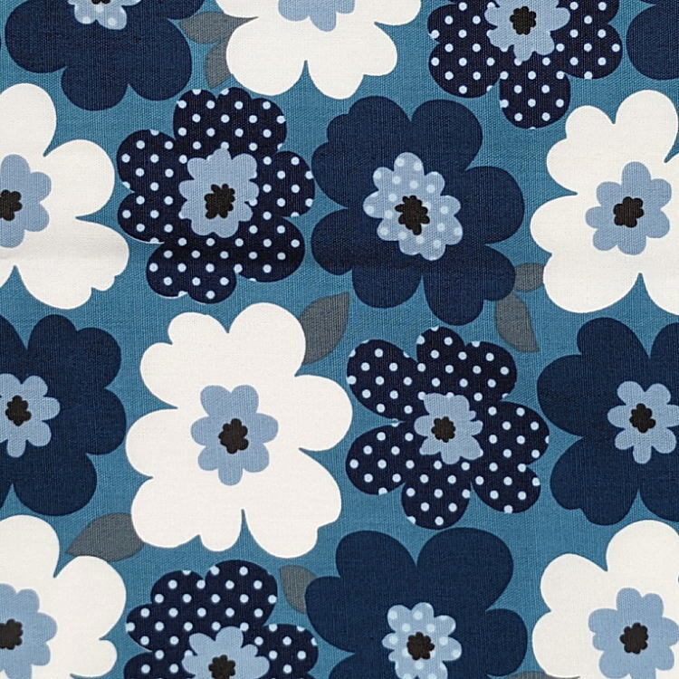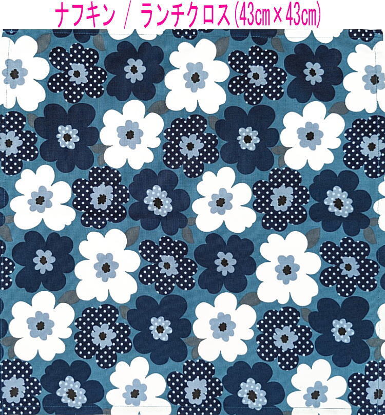 ナフキン・ランチクロス(43cm×43cm)正方形【北欧風 ポップフラワー柄 ブルー×ネイビー】ランチマット ランチョンマット 日本製 花柄