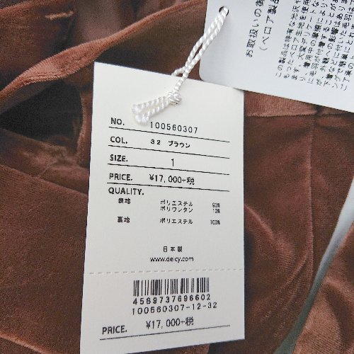 ◇ ⊇ ◎●未使用● DEICY ベロア生地 サスペンダーパンツ サイズ1 ブラウン レディース E