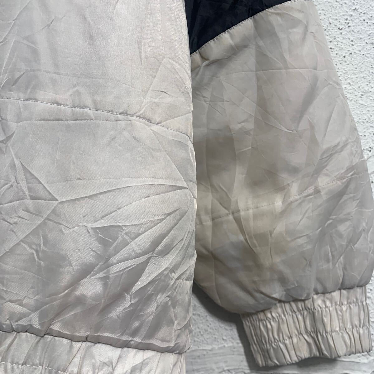 前身頃、両袖、後身頃に汚れ、左袖に破れ、フロントジップトップに欠損が有ります。