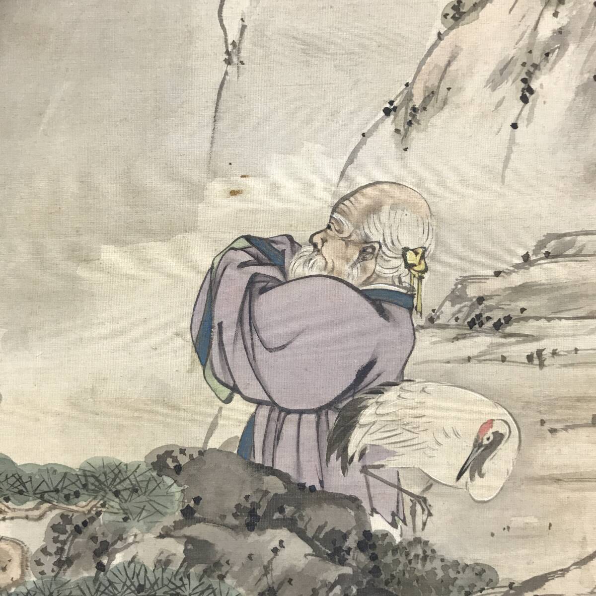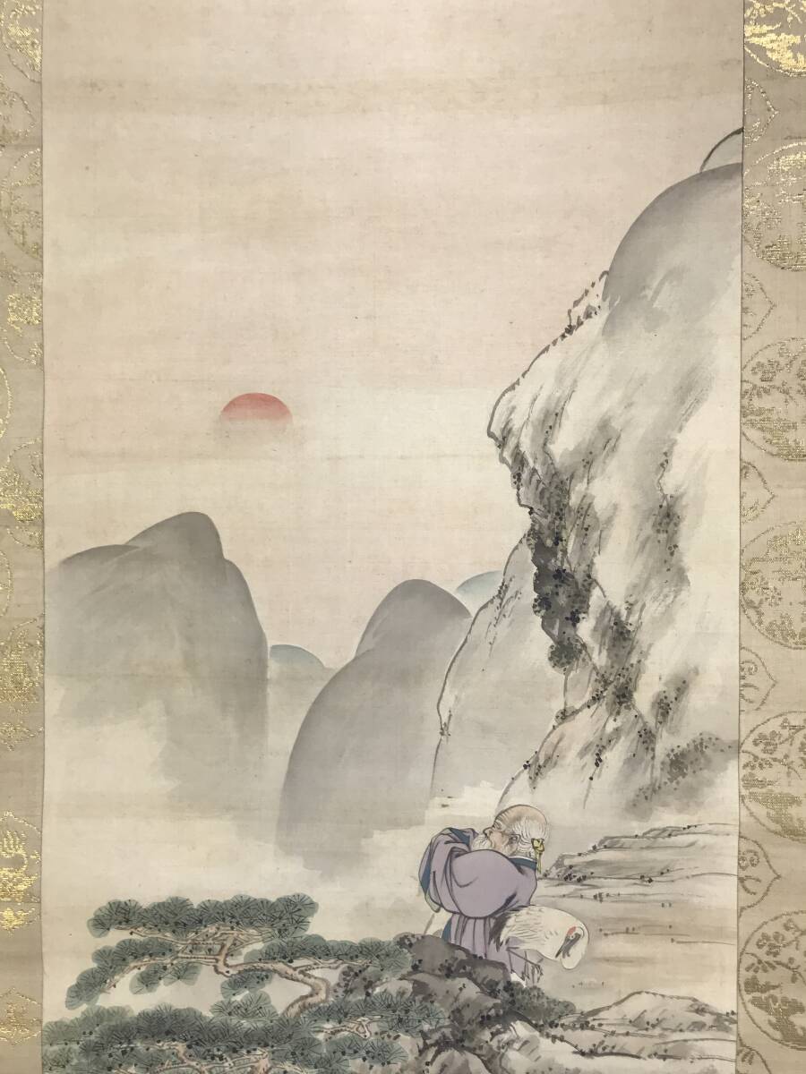【作品状態】 本紙は絹本肉筆です。本紙は薄汚れ、多少の汚れシミあります。表装は天地に薄汚れ、多少の汚れシミ、多数の糊シミあります。