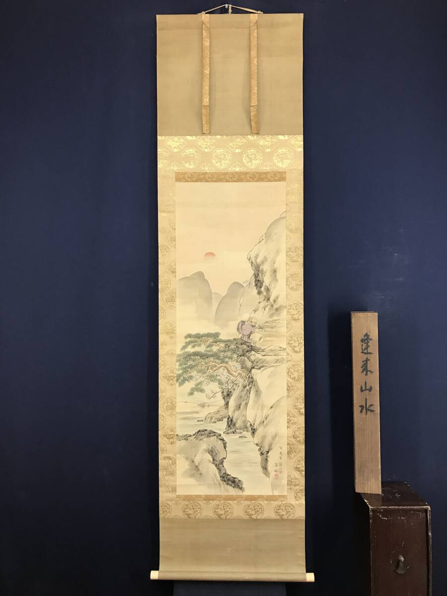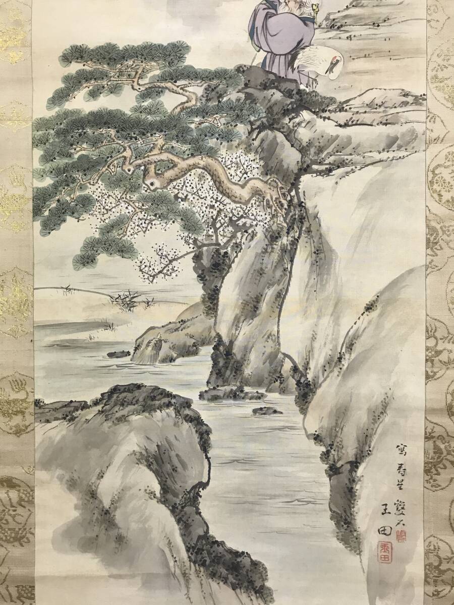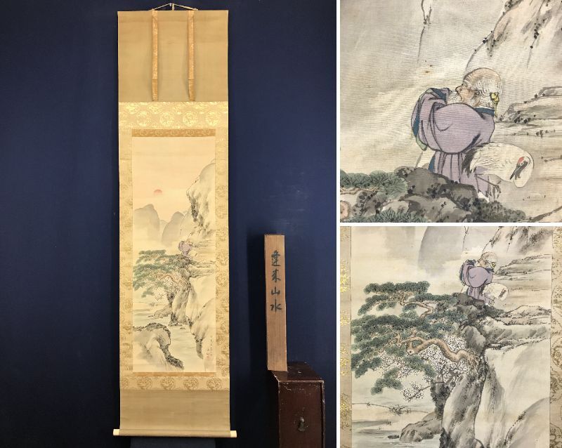 真作/村瀬雙石/玉田/寿星図/山水図/蓬莱山図/祝掛軸/正月掛軸/掛軸☆宝船☆AI-84