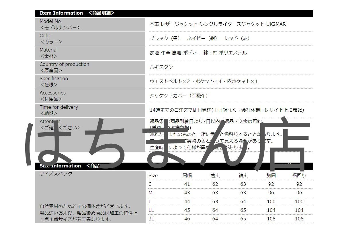 シングル ライダース ジャケット レザージャケット 革ジャン メンズ 本革 赤 紺 黒 キャメル UK2 ブラック S-3XL