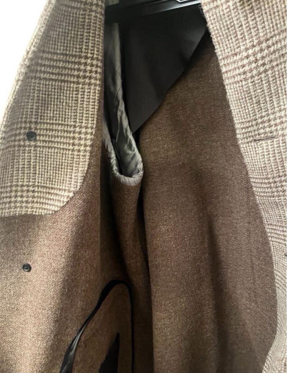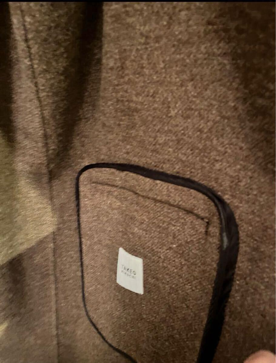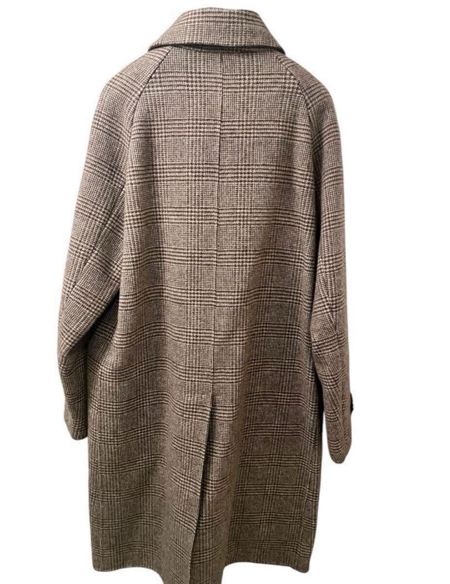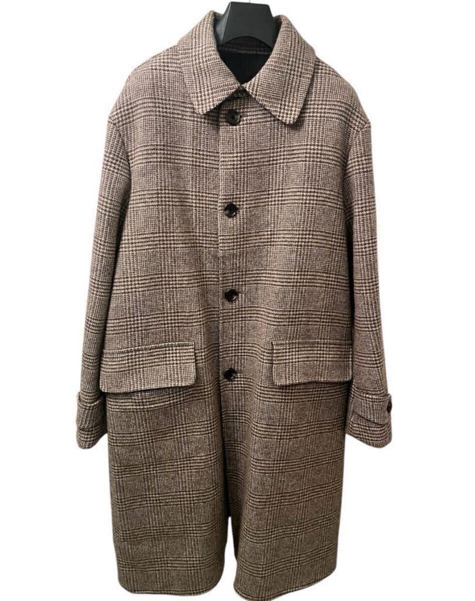 【デザインポイント】タケオキクチが出来た1984年。恐らくその頃に作られたタケオキクチ、オーバーコートに着目し、今の時流に合ったデザインでアップデートしたコートです。ポイントは・オーバーサイズだが非常に軽く、フォルム、シルエットは当時のバランスを採用しながらも、衿の大きさや、袖の太さなどはすっきりと現代版に。・デザインはクラッシックなディテールである、チンストラップや、チェンジポケット付き。チェンジポケットは通常フラップポケットの上段に来るのがセオリーだが、あえて腰のフラップと重ね付し、ギミック的な面白さも追求。