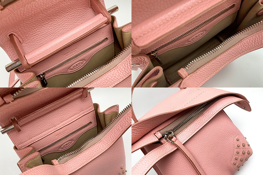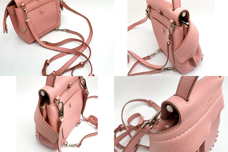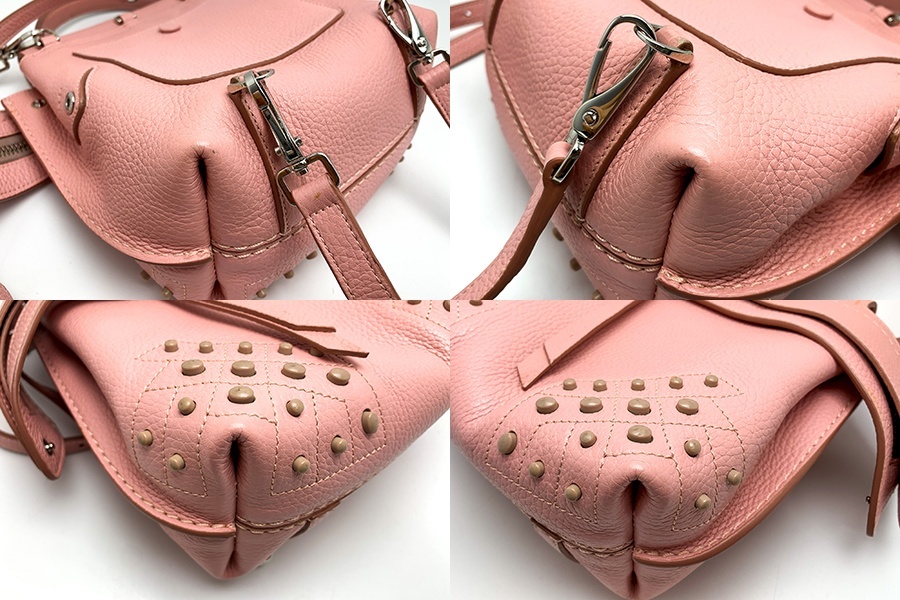 | トッズの3WAYバッグです!ハンドバッグ、ショルダーバッグ、バックパックになります。その日の気分に合わせて使える優秀バッグです。ABランク。角スレ、表面汚れが所々ございます。持ち手下部近く・ファスナー近くに糊汚れございます。金具かけるレザー部分に擦れ、スタッズに小傷がございますが、まだまだお使いいただけるお品です。 | |