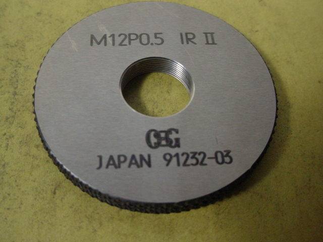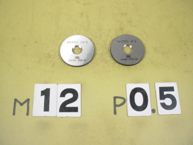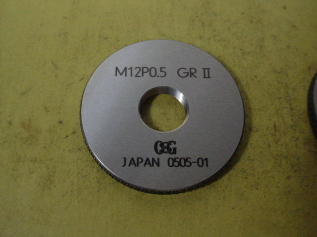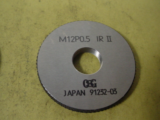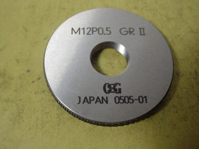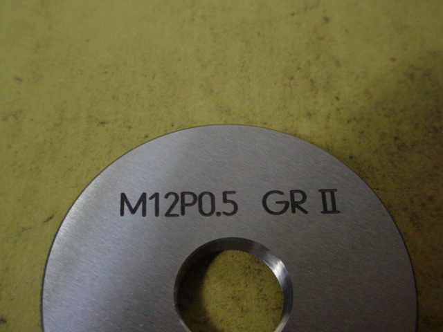 ミリサイズのネジゲージ リングゲージタイプです。 程度良好な中古品です。サイズM12*0.5 GR2-IR2 写真現状有り姿渡しでご入札下さい。