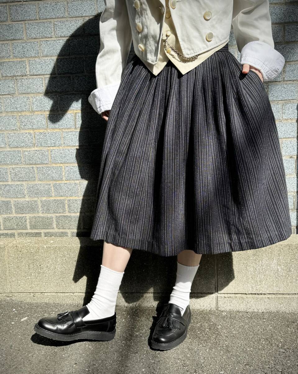 おそらく紳士のスーツ用織り生地を用いた、ハンドメイドスカートです