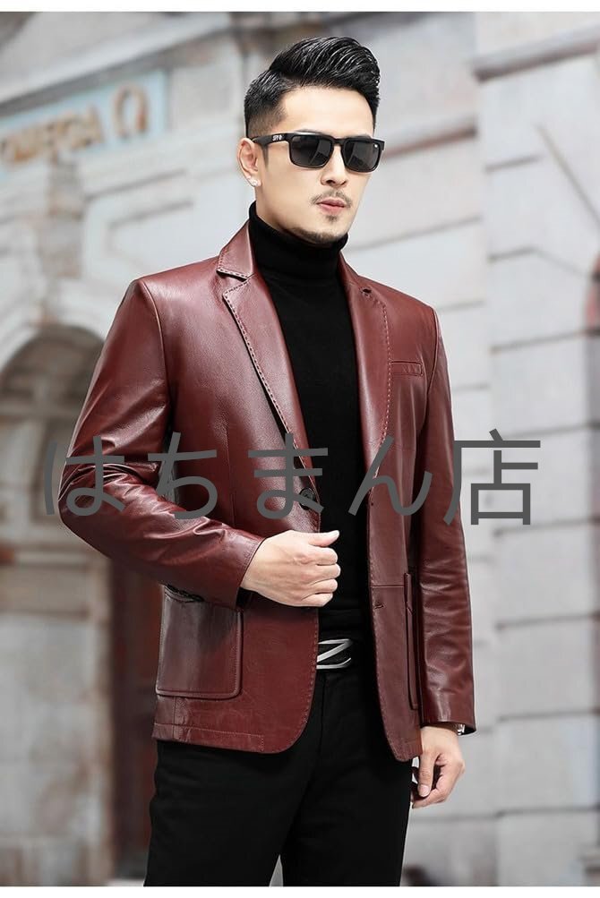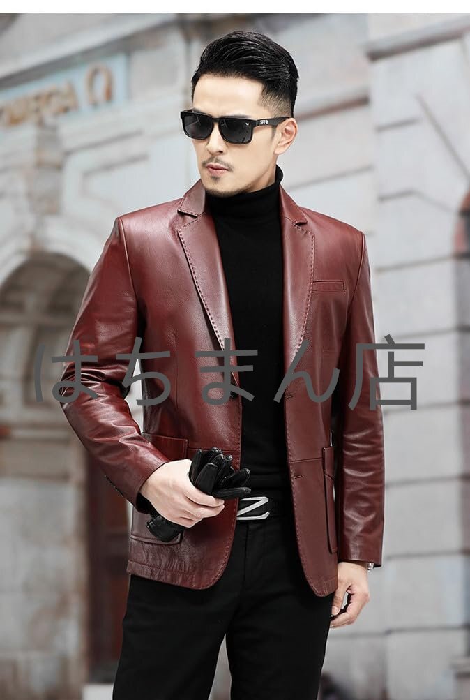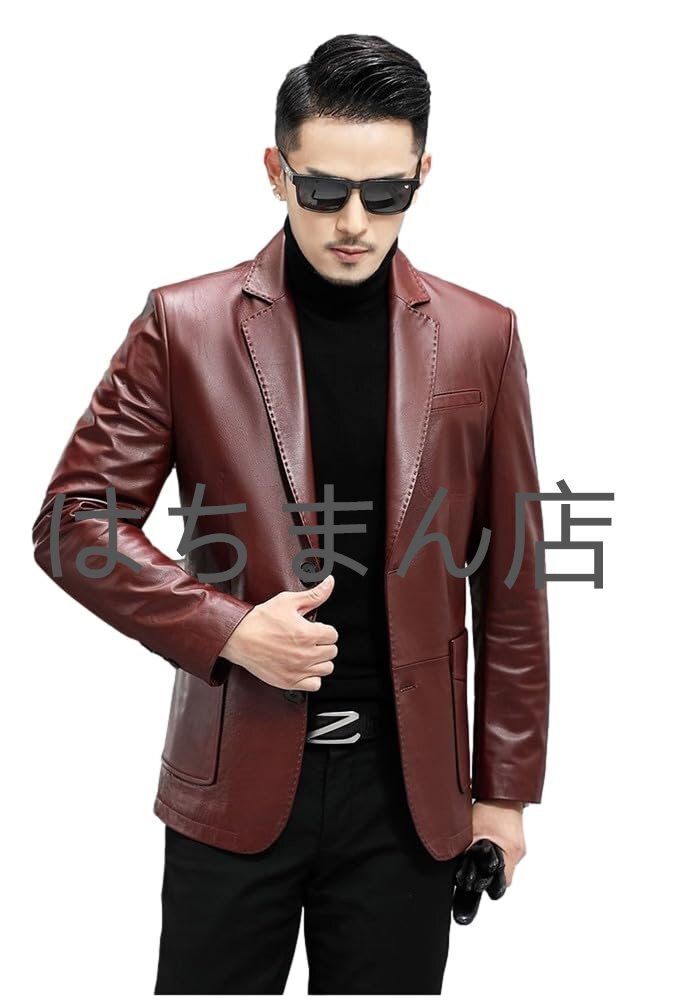 レザーテーラードジャケット メンズ 革ジャン レザージャケット 本皮ジャンパー ライダースジャケット フォーマル 細身 ワインレッド L-5XL