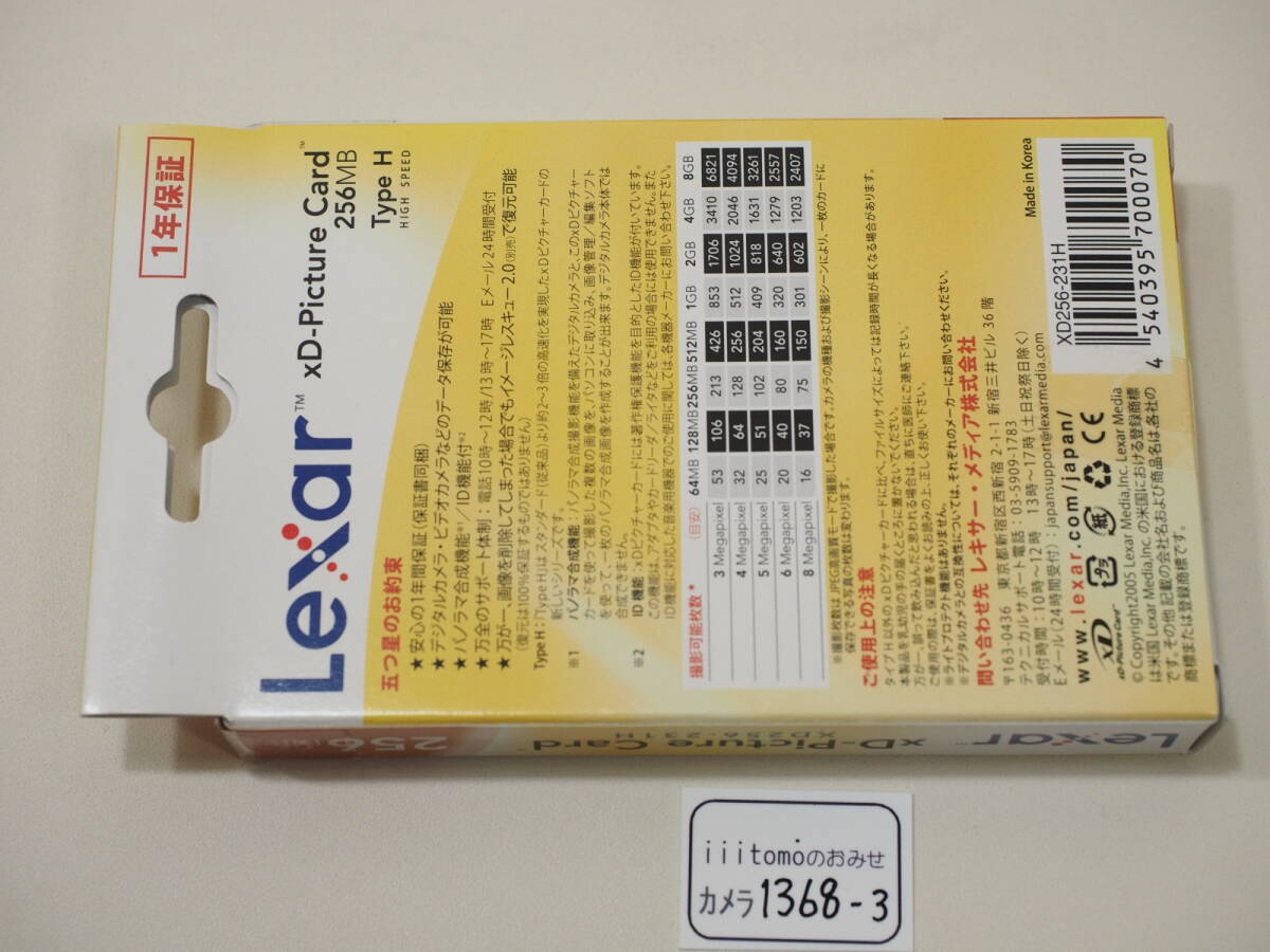 管理番号 カメラ 1368-3 タイプ xDピクチャーカード 256MB(TypeH) 未使用ですが、箱にセロテープ貼付があります ブランド名 Lexar レキサー(OLYMPUS オリンパス) 製造国 韓国製 サイズ ━ |