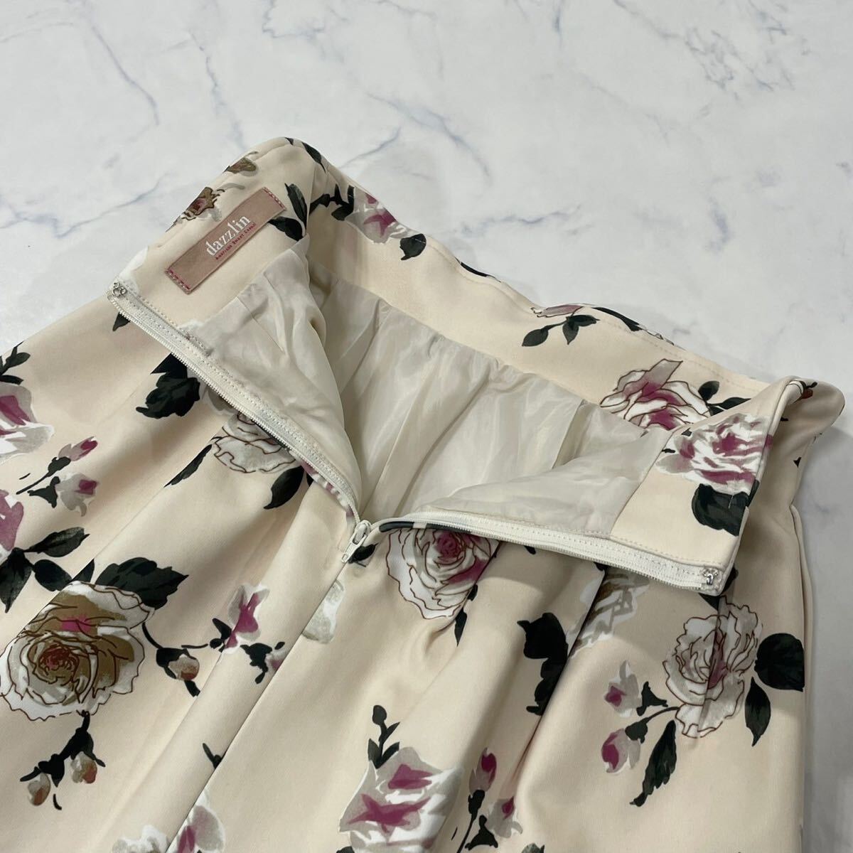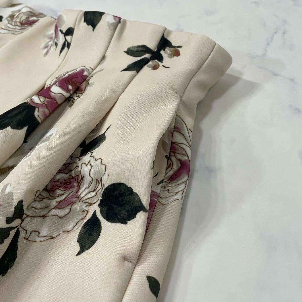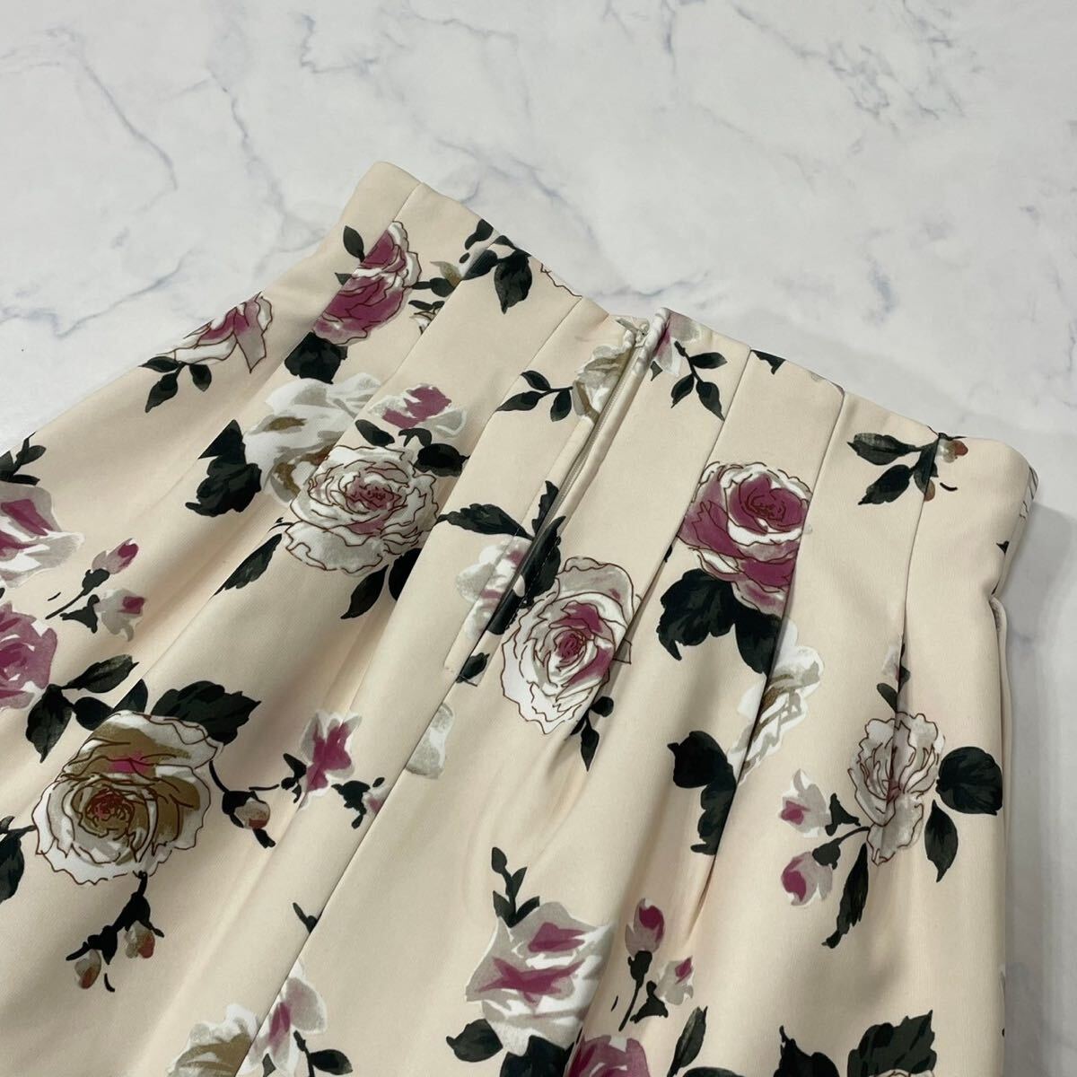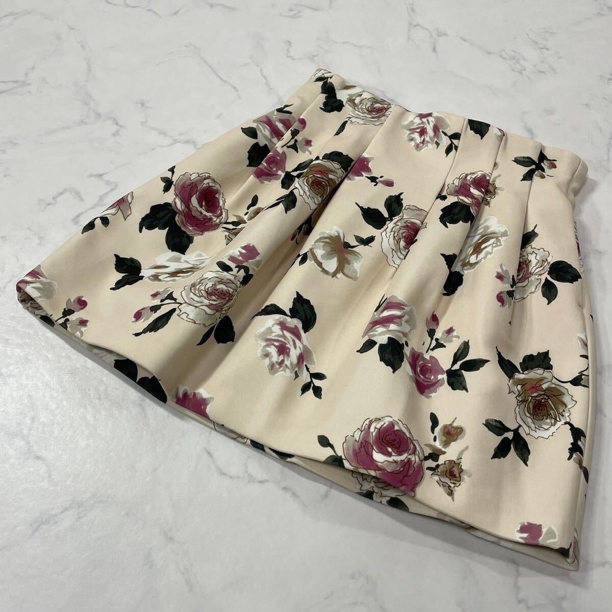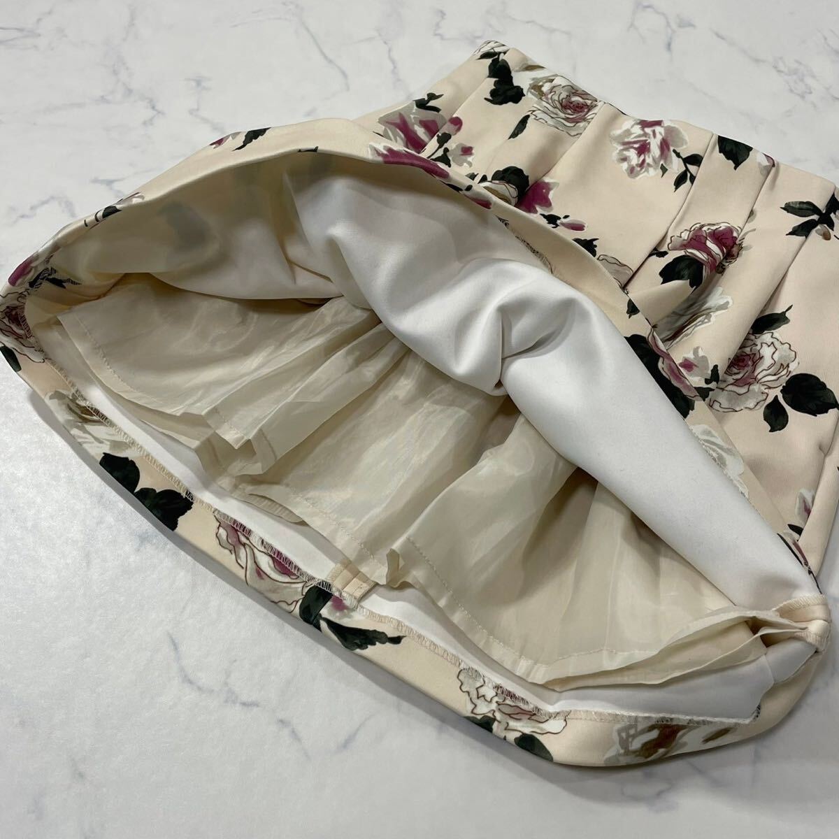 花柄 裏地付き タック ジップ ポケット ミニ スカート