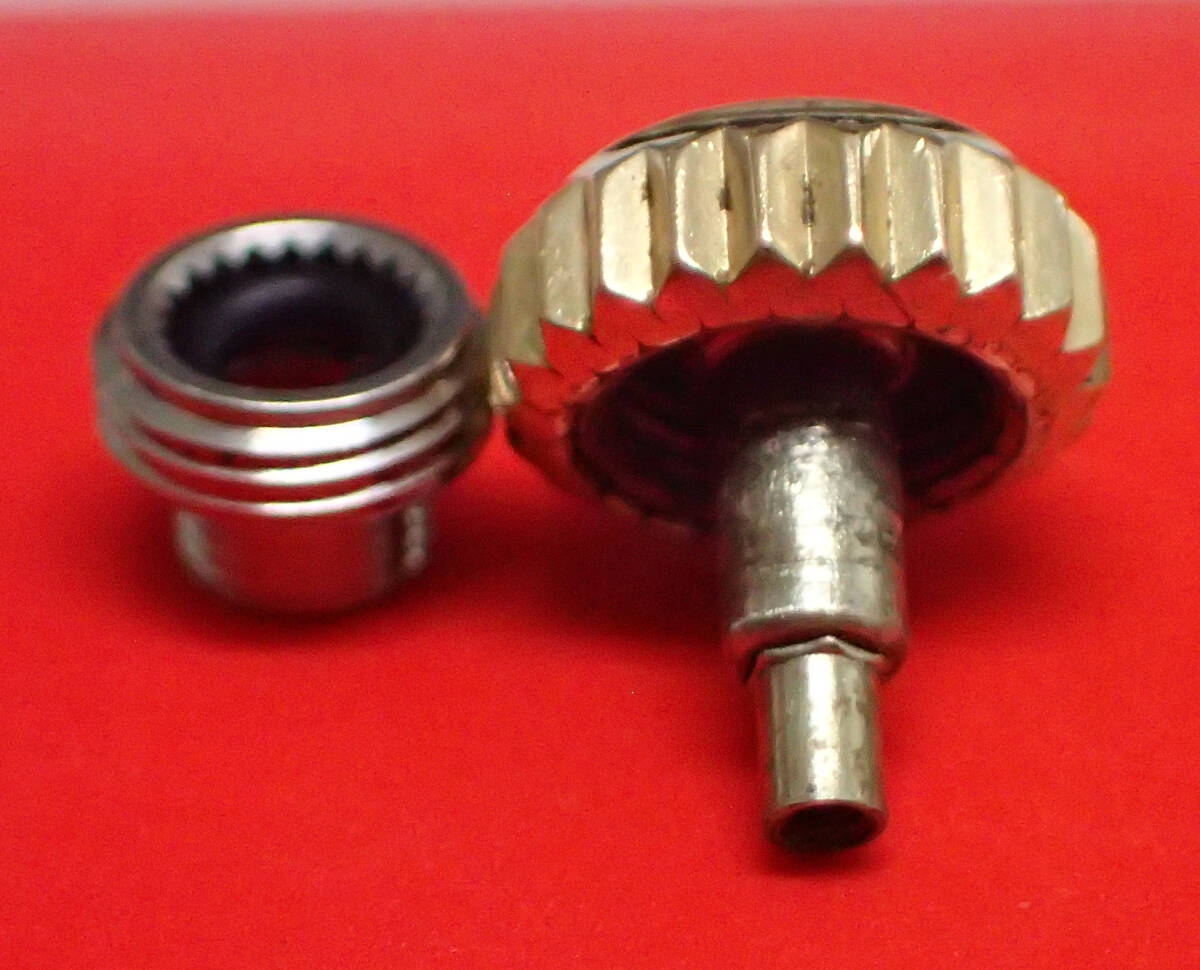 中古リューズの約7割はねじ込みが0.5から1.0回転未満で交換しても長くは使えません。当店では約1.5回転(時計回り)以上のリューズのみを選別し販売しております。回転数は新品のチューブで計測しており、損耗したチューブの場合は回転数が減りますのでチューブセットのご購入をお勧め致します。